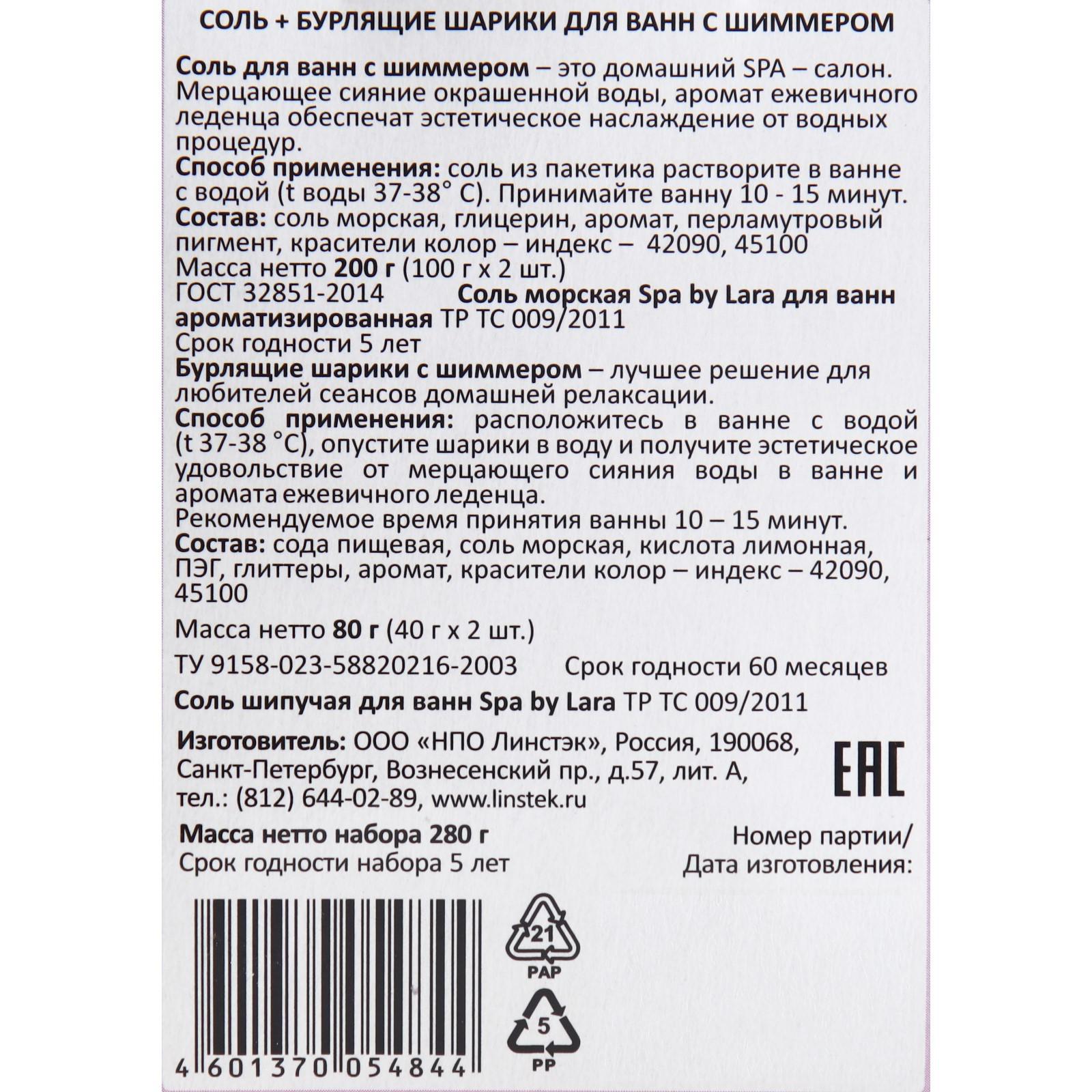 Соль морская для ванн "Ежевичный леденец", 2*100г+Бомбочки для ванн Spa by Lara, 2*40г