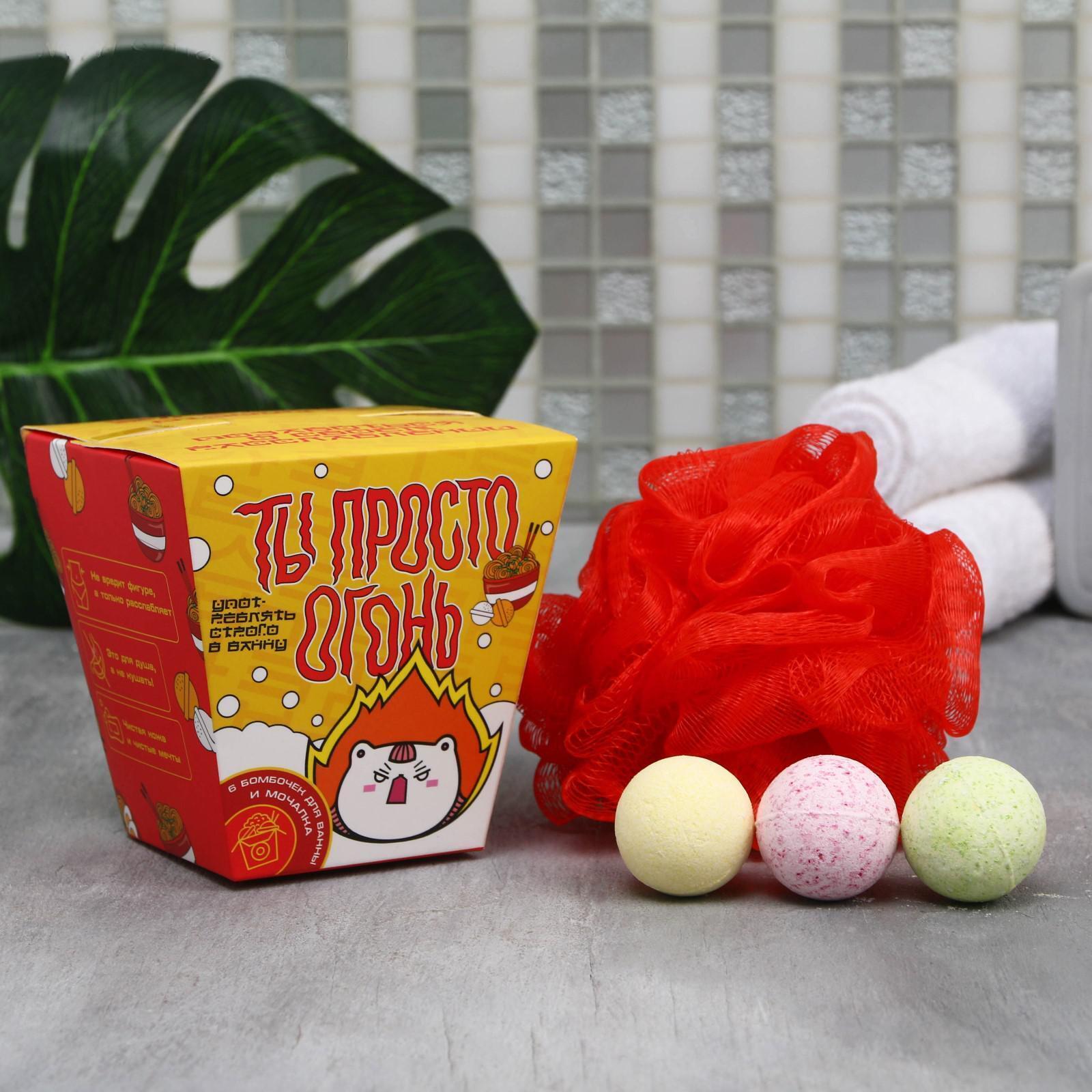 Набор «Ты просто огонь» соль для ванны 6 шт и мочалка.