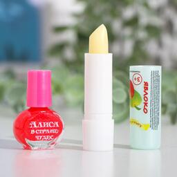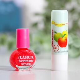 Набор «Алиса в стране чудес»: бальзам для губ, яблоко 3,5 г + лак для ногтей, 5 мл