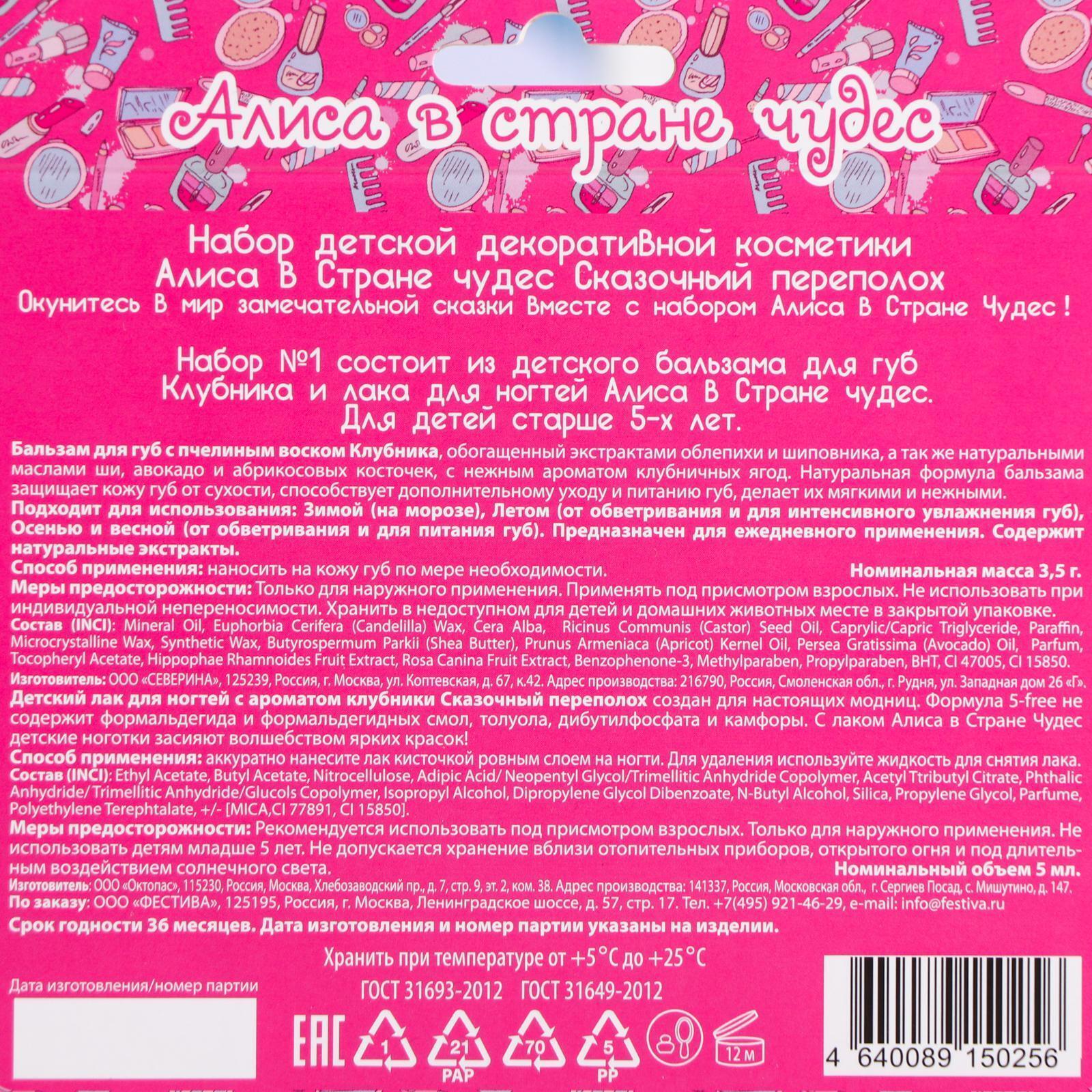 Набор «Алиса в стране чудес»: бальзам для губ, клубника, 3,5 г + лак для ногтей, 5 мл