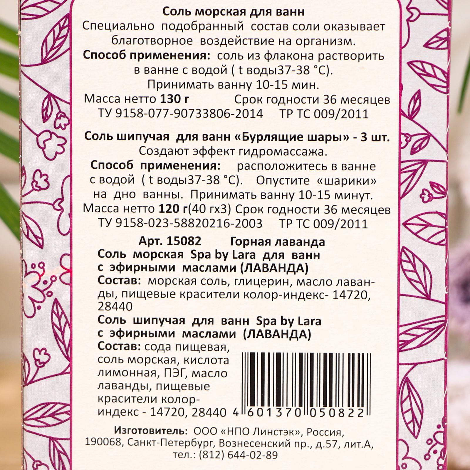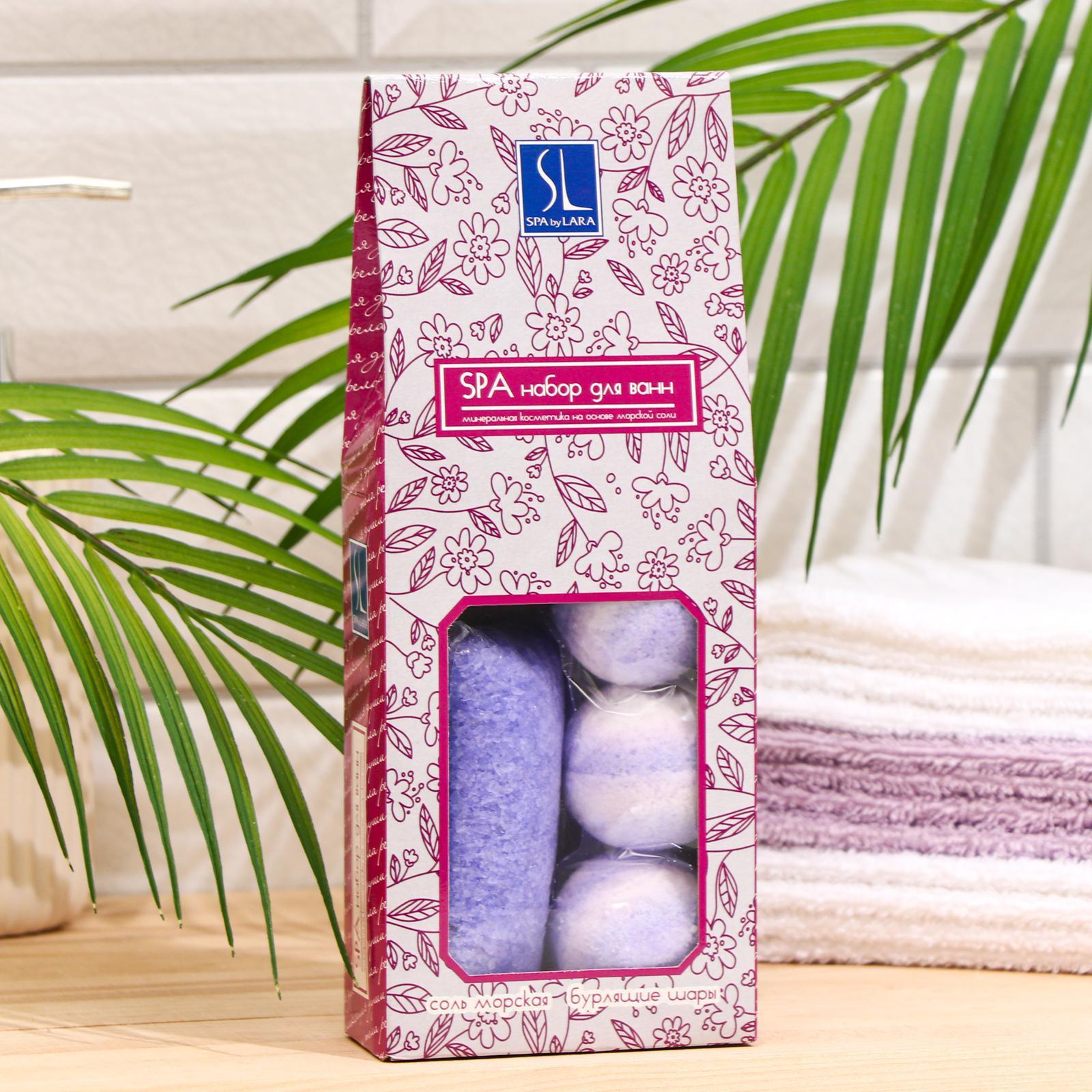 Подарочный Набор Горная лаванда Соль морская и бомбочки Spa by Lara для ванн с эфирными маслами