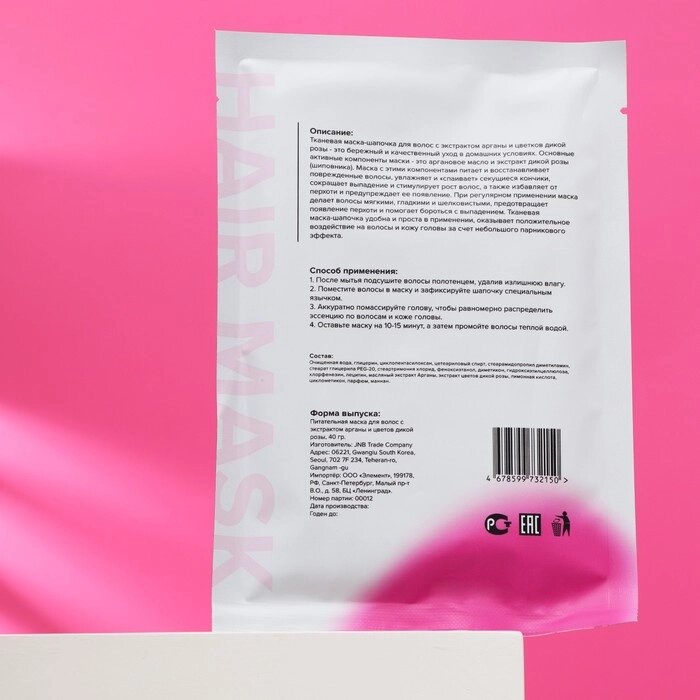 Маска-шапочка с экстрактом арганы и цветов розы, 40 г