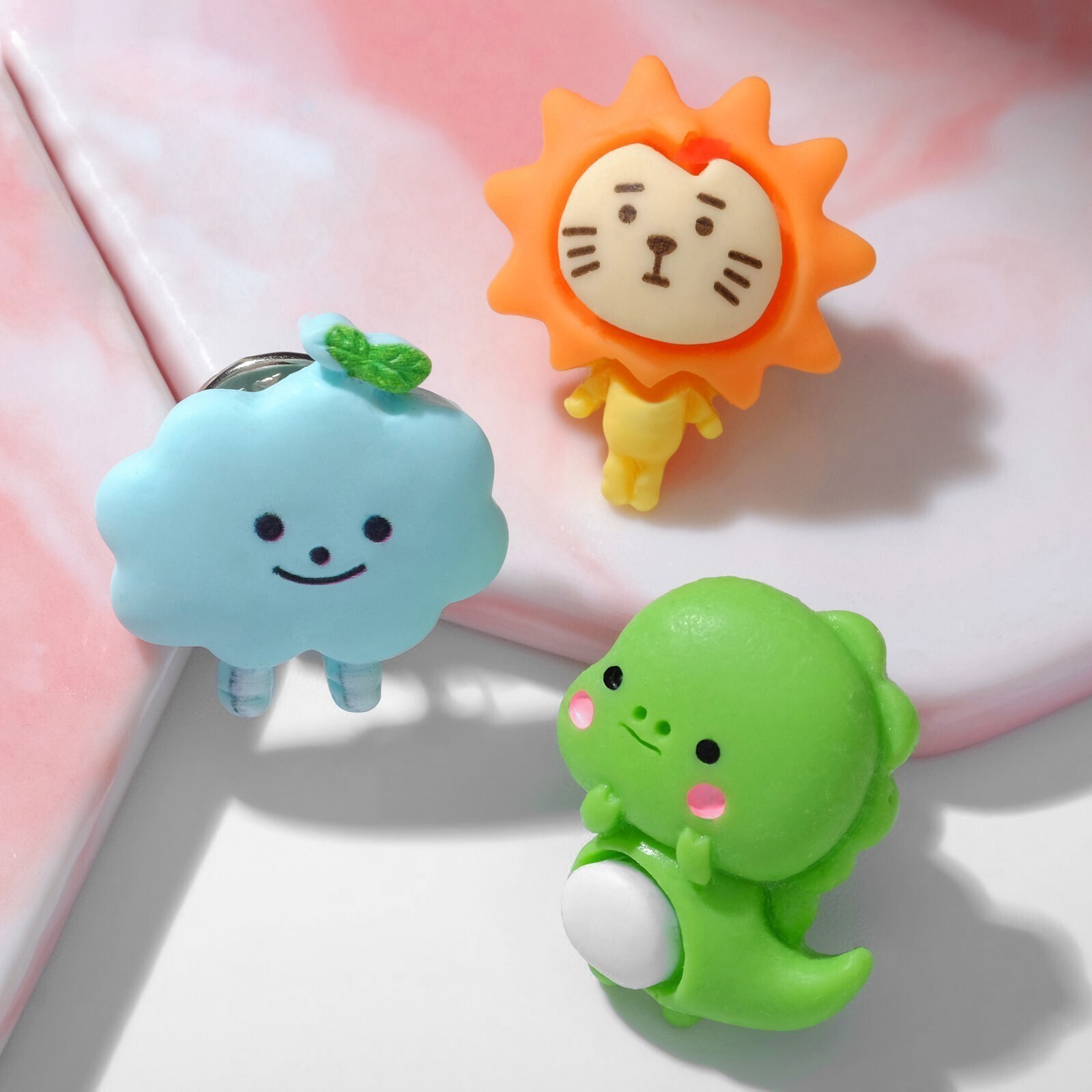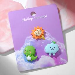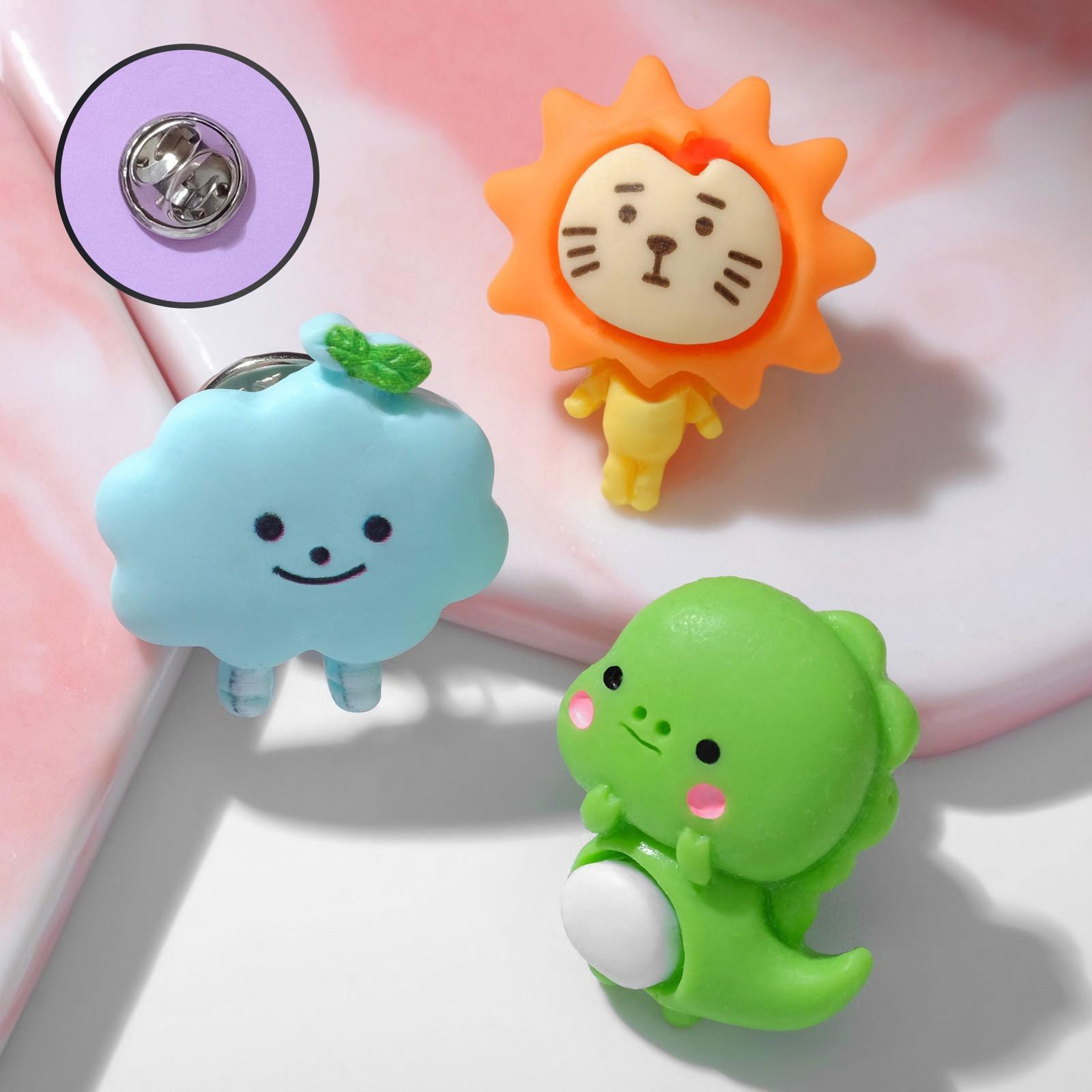 Набор значков (3 шт.) "Зоопарк" лев, облако, динозавр, цветной