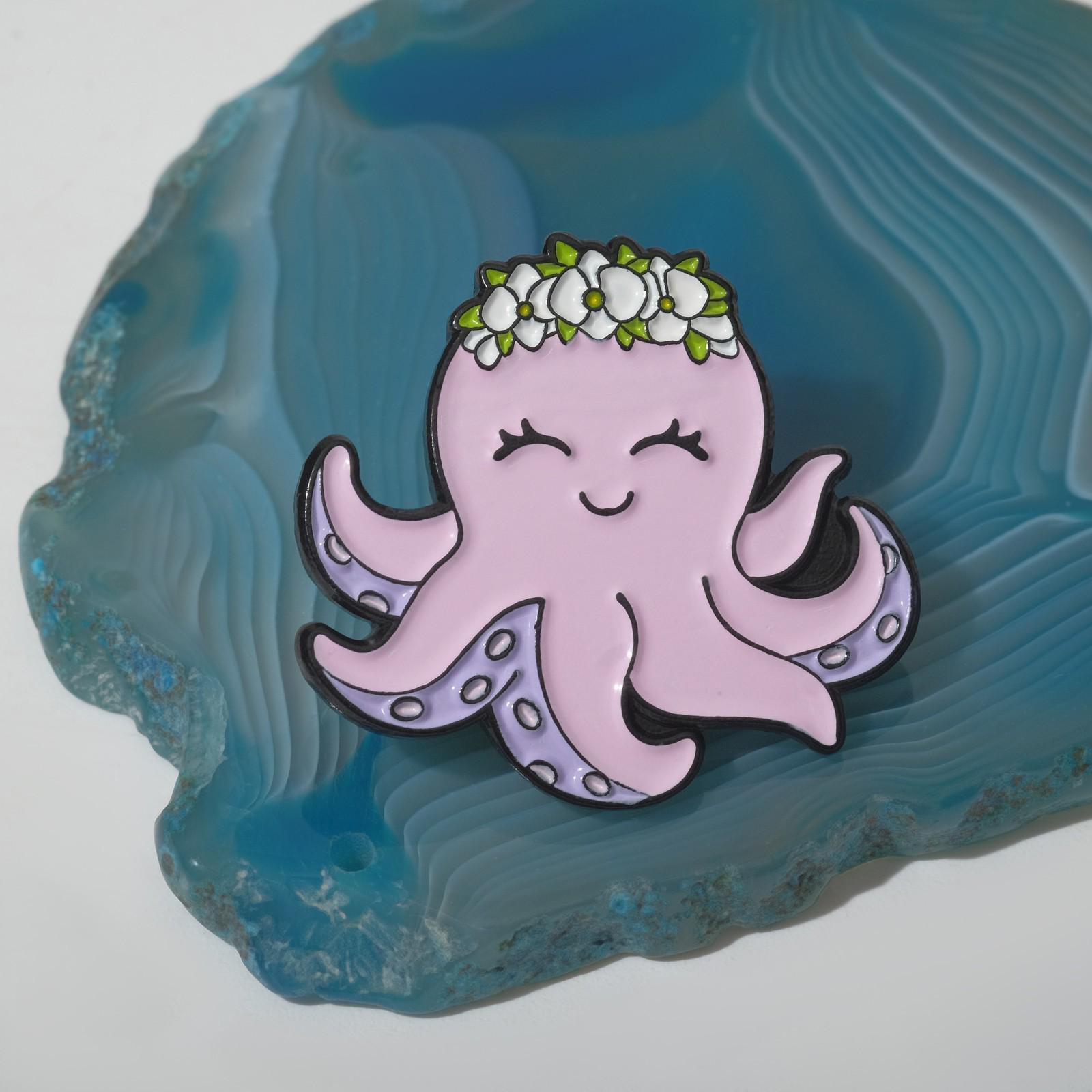 Значок "Осьминог" в венке, цветной в чёрном металле