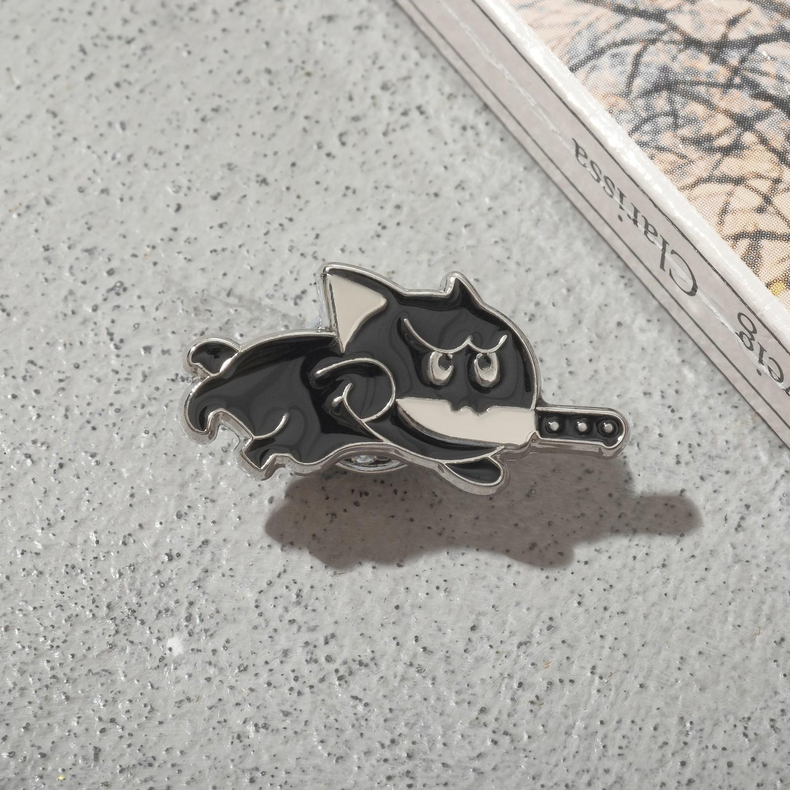Значок "Кот" охотник, в прыжке, цвет чёрный в серебре