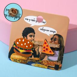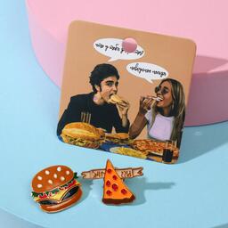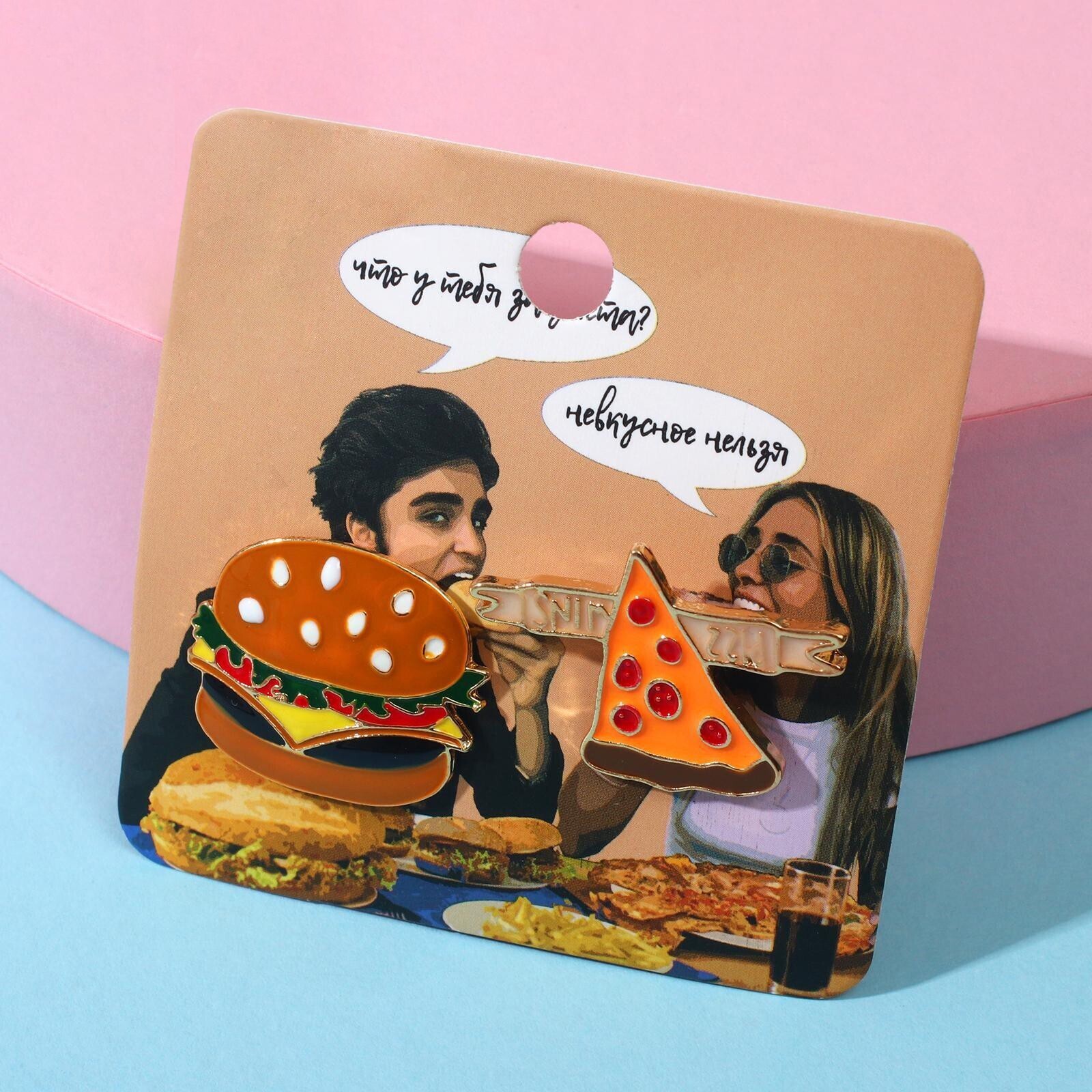 Значки-неразлучники "Фастфуд" пара, цветные в золоте