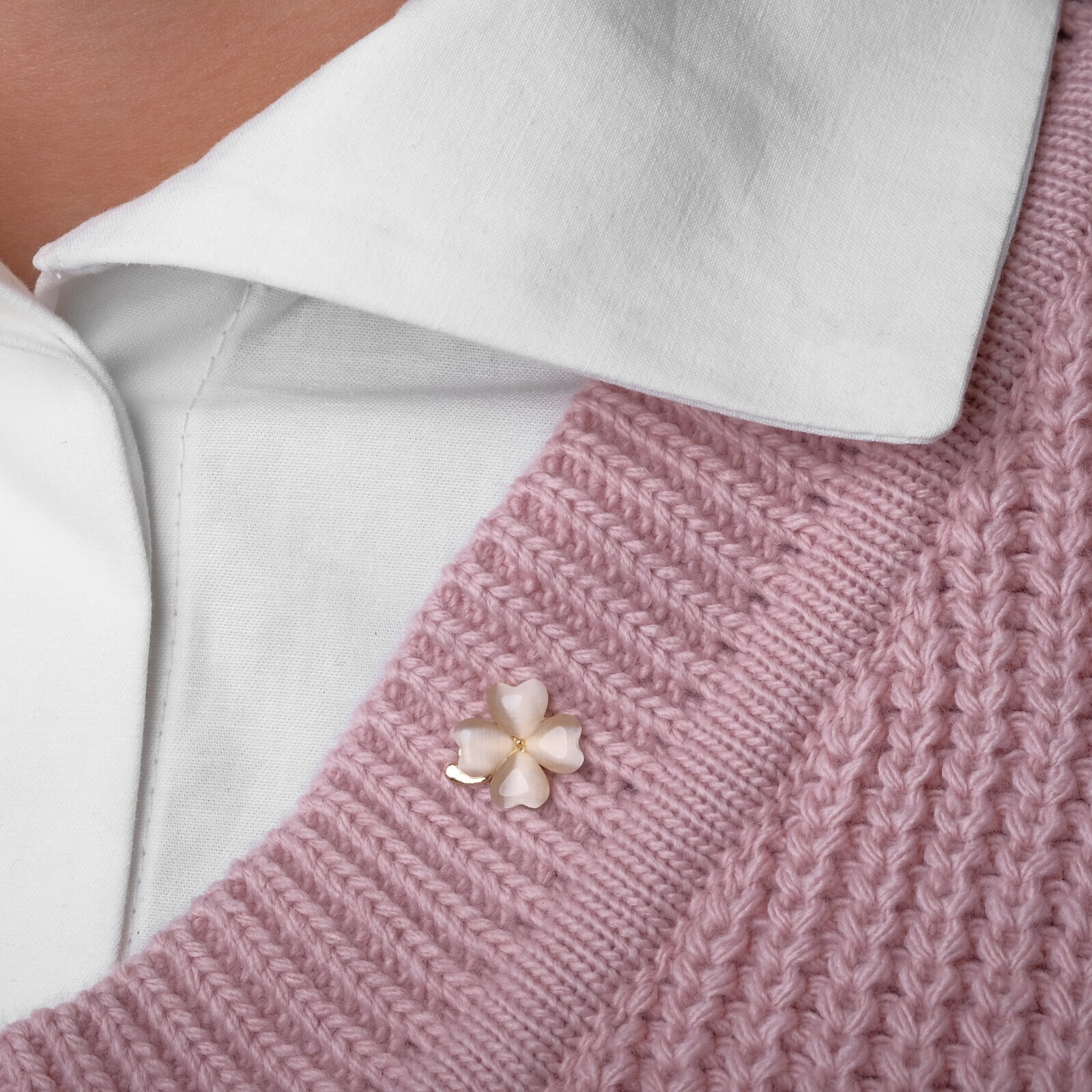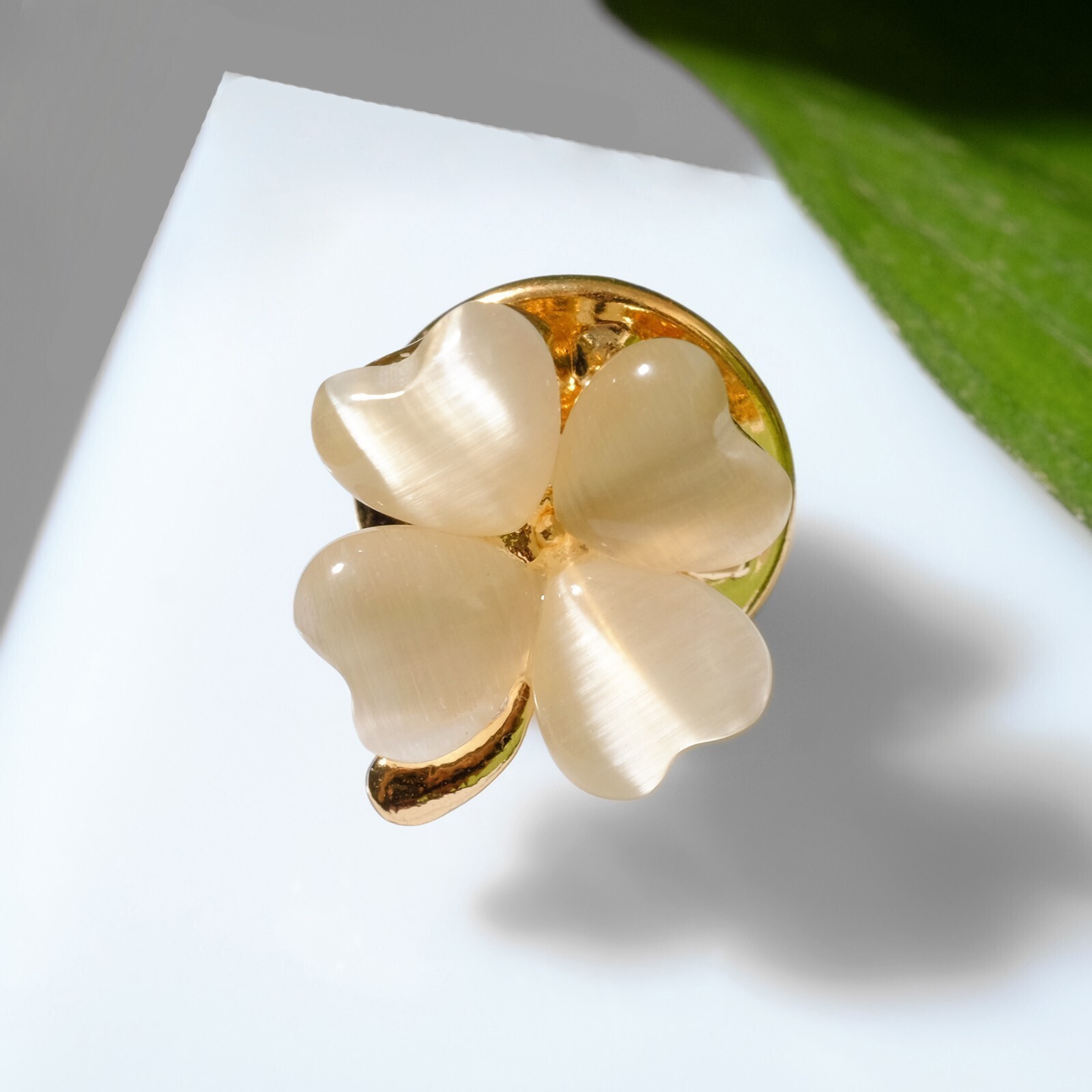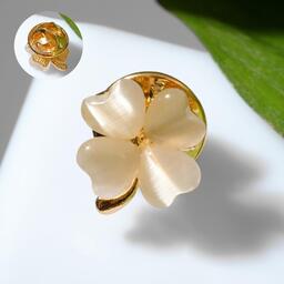 Значок "Клевер" четырёхлистный, цвет бежевый в золоте