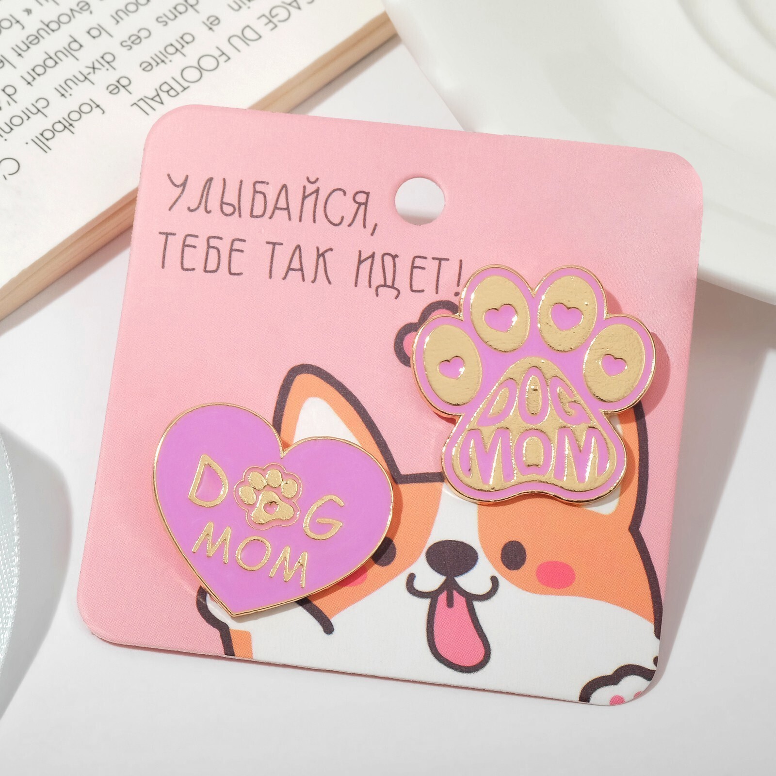 Набор значков (2шт) "Собачья лапка", цвет розовый в золоте