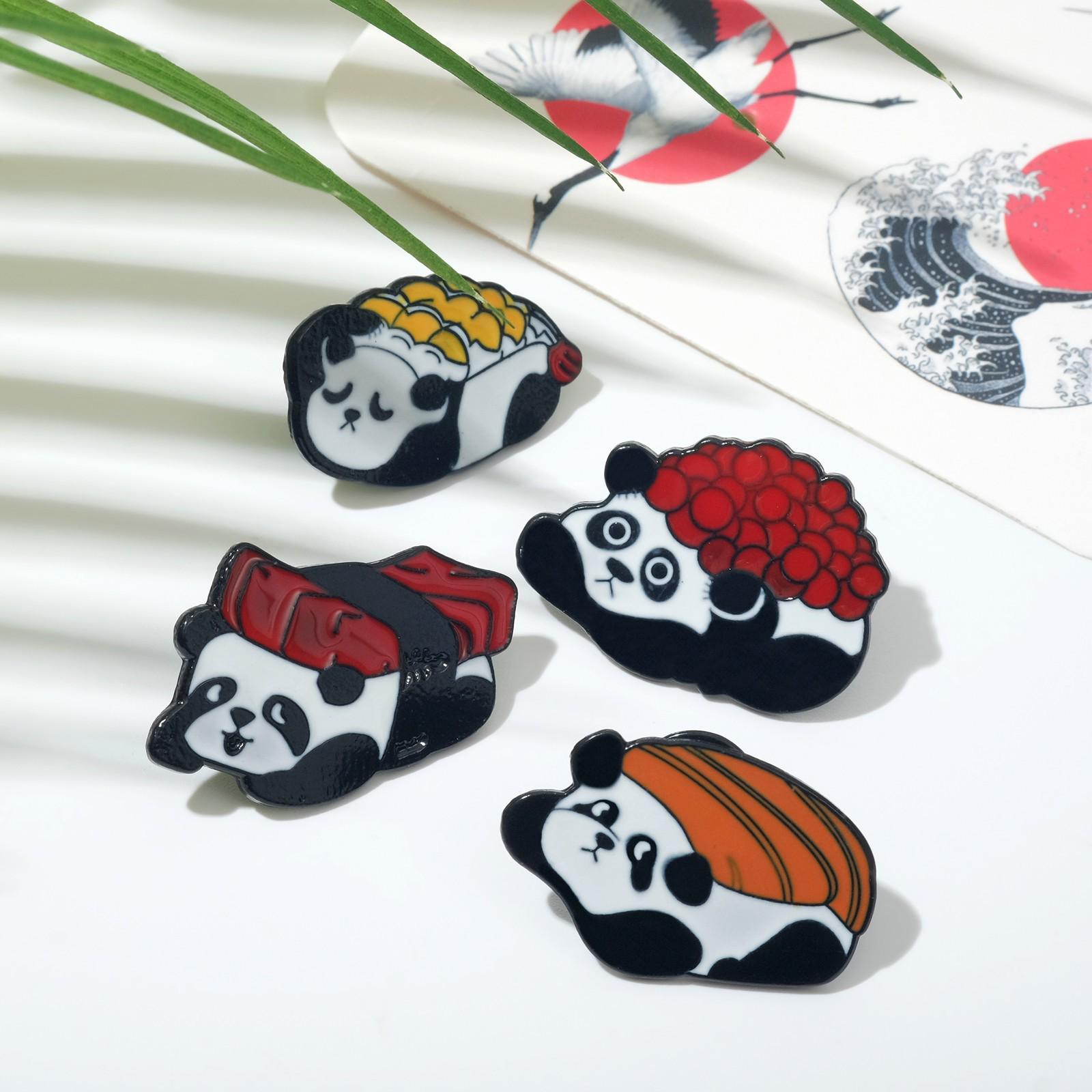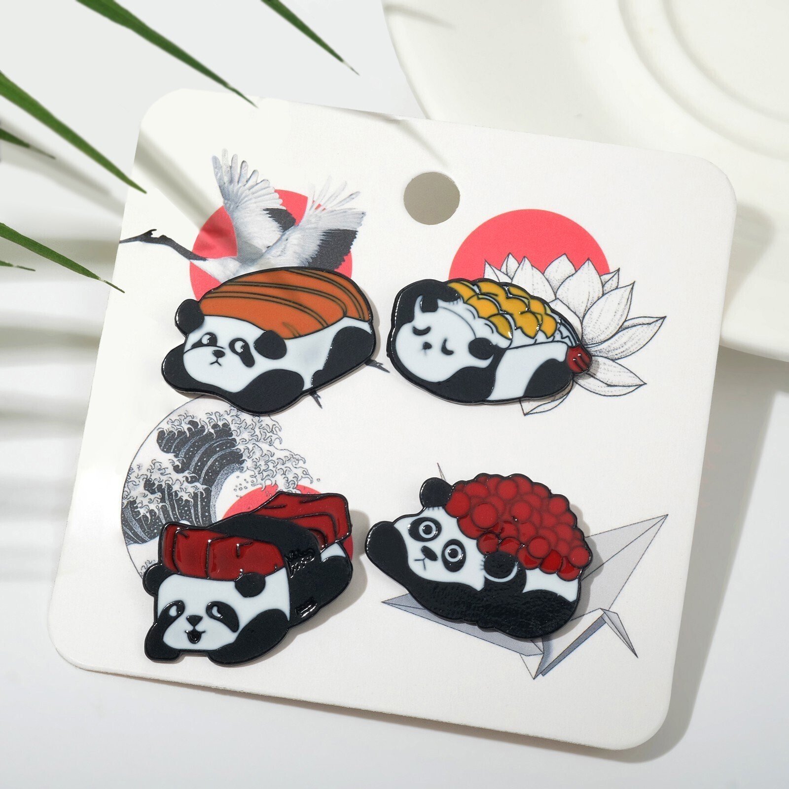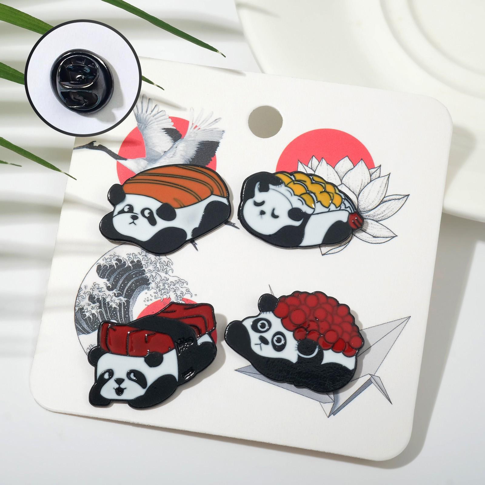 Набор значков (4 шт.) "Панда-суши", цветные в чёрном металле