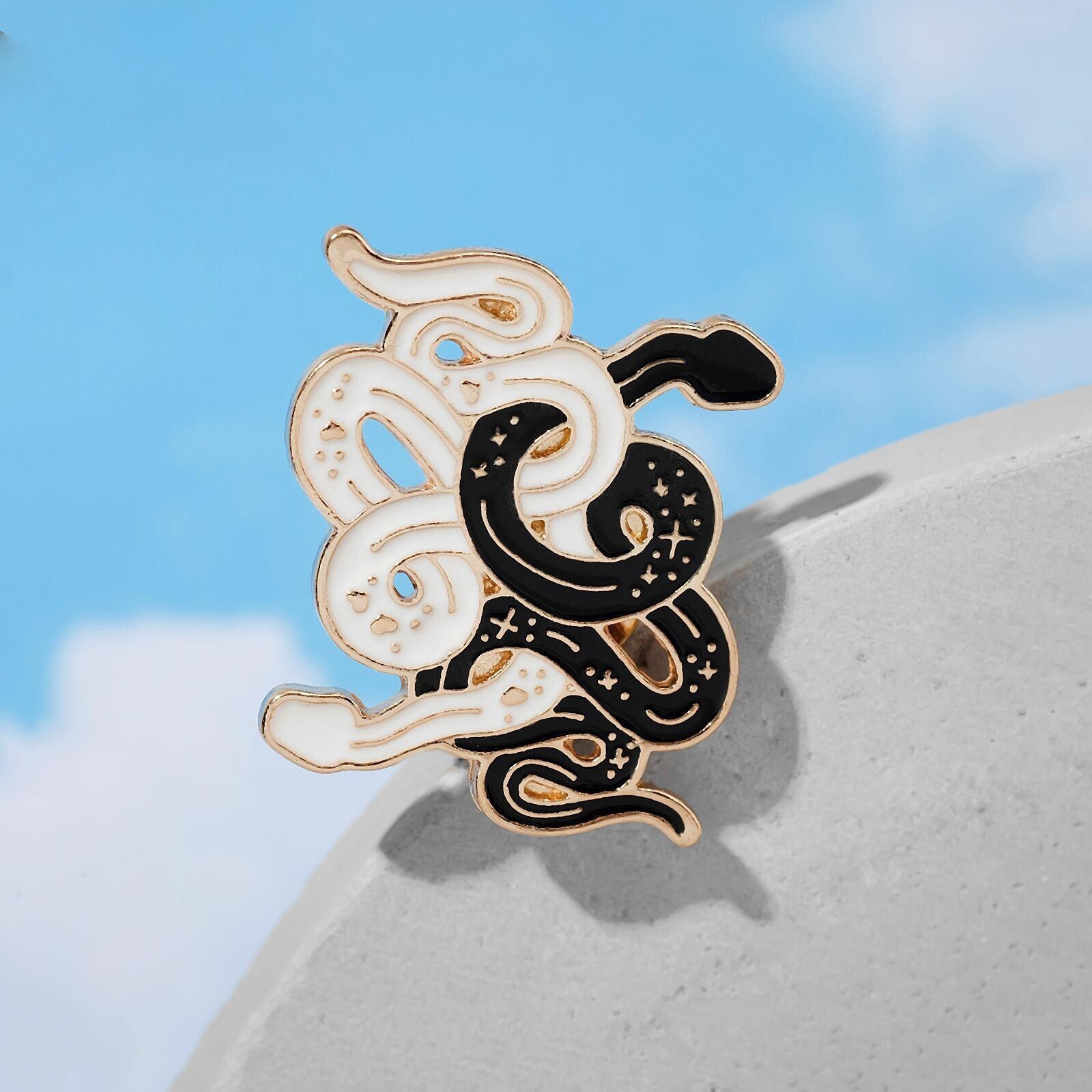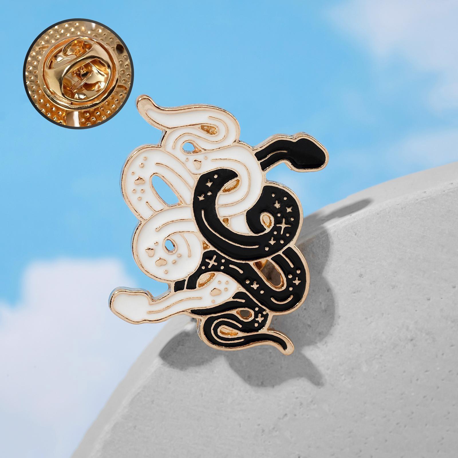 Значок "Змеи" инь-ян, цвет чёрно-белый в золоте