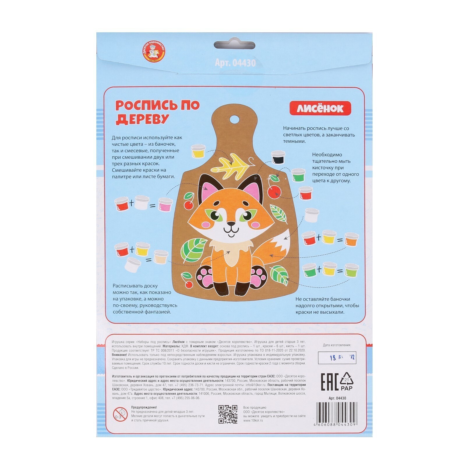 • Комплектация набора С кисточками, С красками