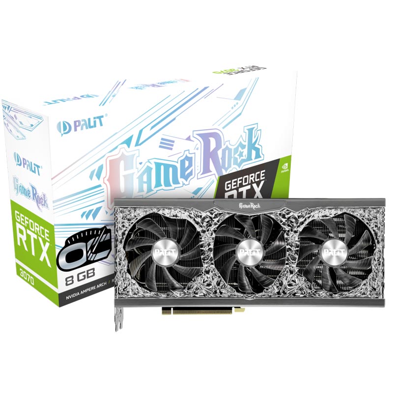 Видеокарта Palit NVIDIA - GeForce RTX 3070 GameRock OC, PCI-E 4.0 16x, GDDR6 8GB 256bit, 1x HDMI, 3x DP, max 7680 x 4320, 270Вт, 304мм, LHR, Full Height, NE63070H19P2-1040G V1