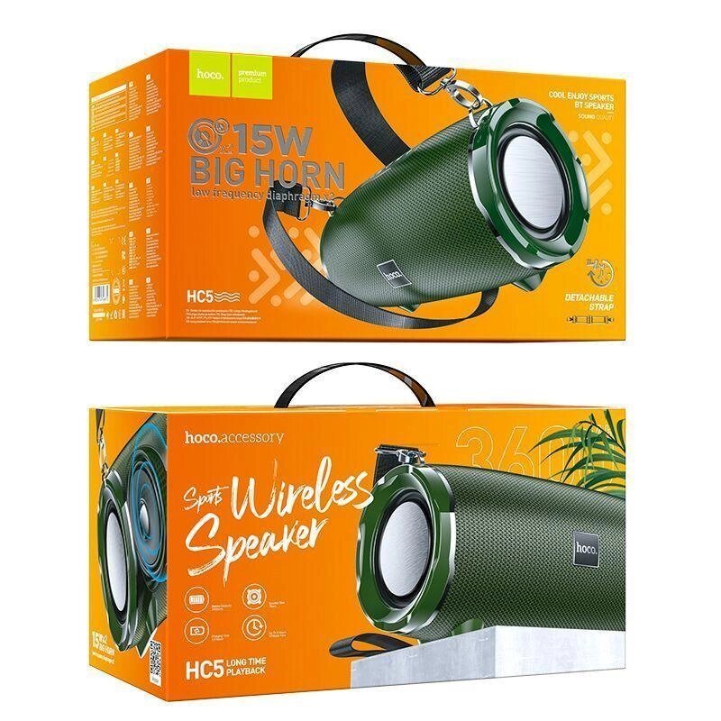 Портативная колонка hoco HC5 темно-зеленая (30W, BT 5.0, USB, AUX, TF, FM, TWS, 3600mah)