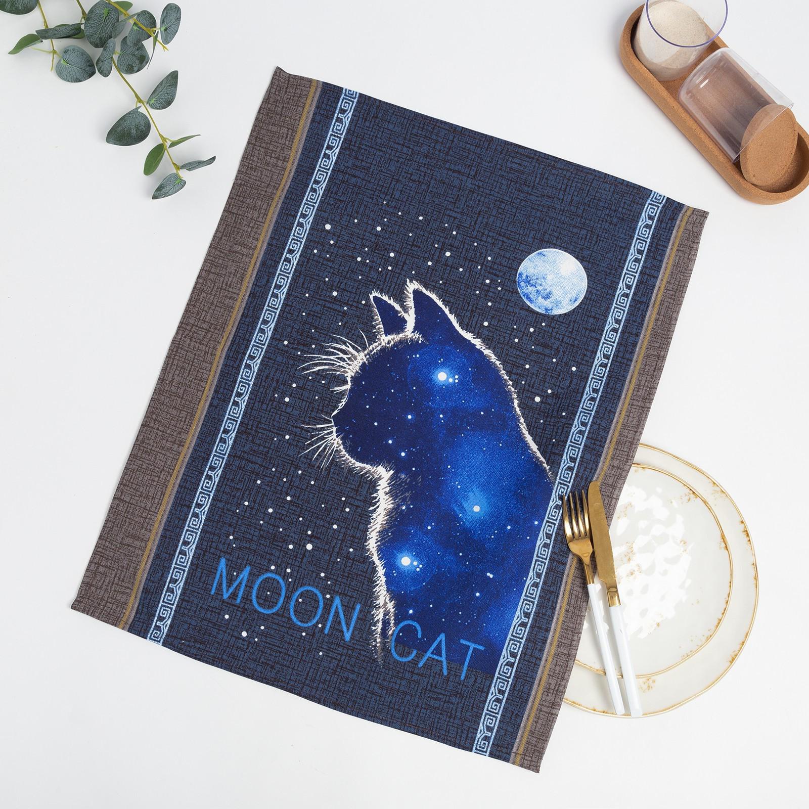 Полотенце новогоднее рогожка «Лунный кот» (в пакете) размер 45х60см, 170г/м² 100% хлопок