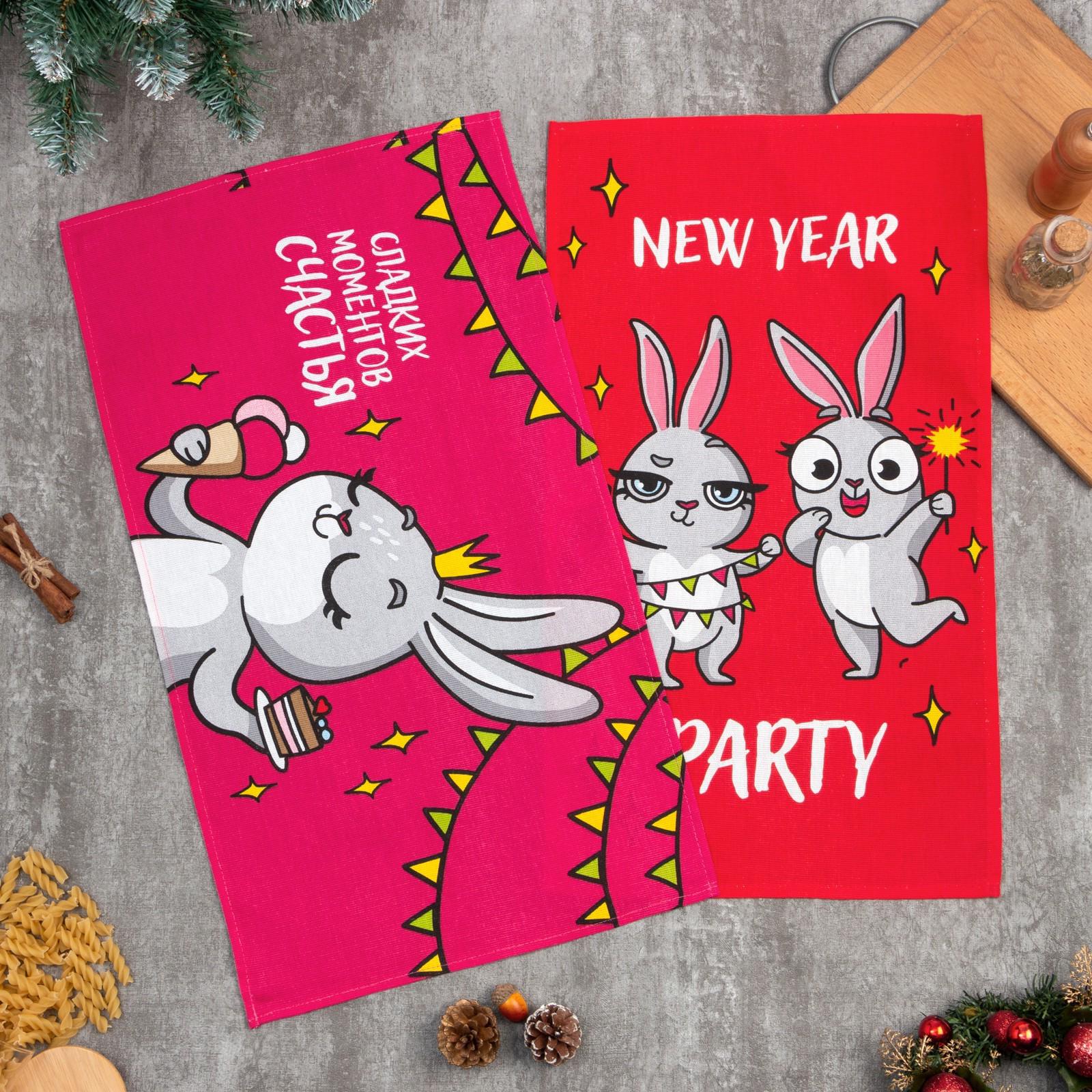 Набор кухонных полотенец Доляна New Year party 35х60 см - 2 шт., 100% хл