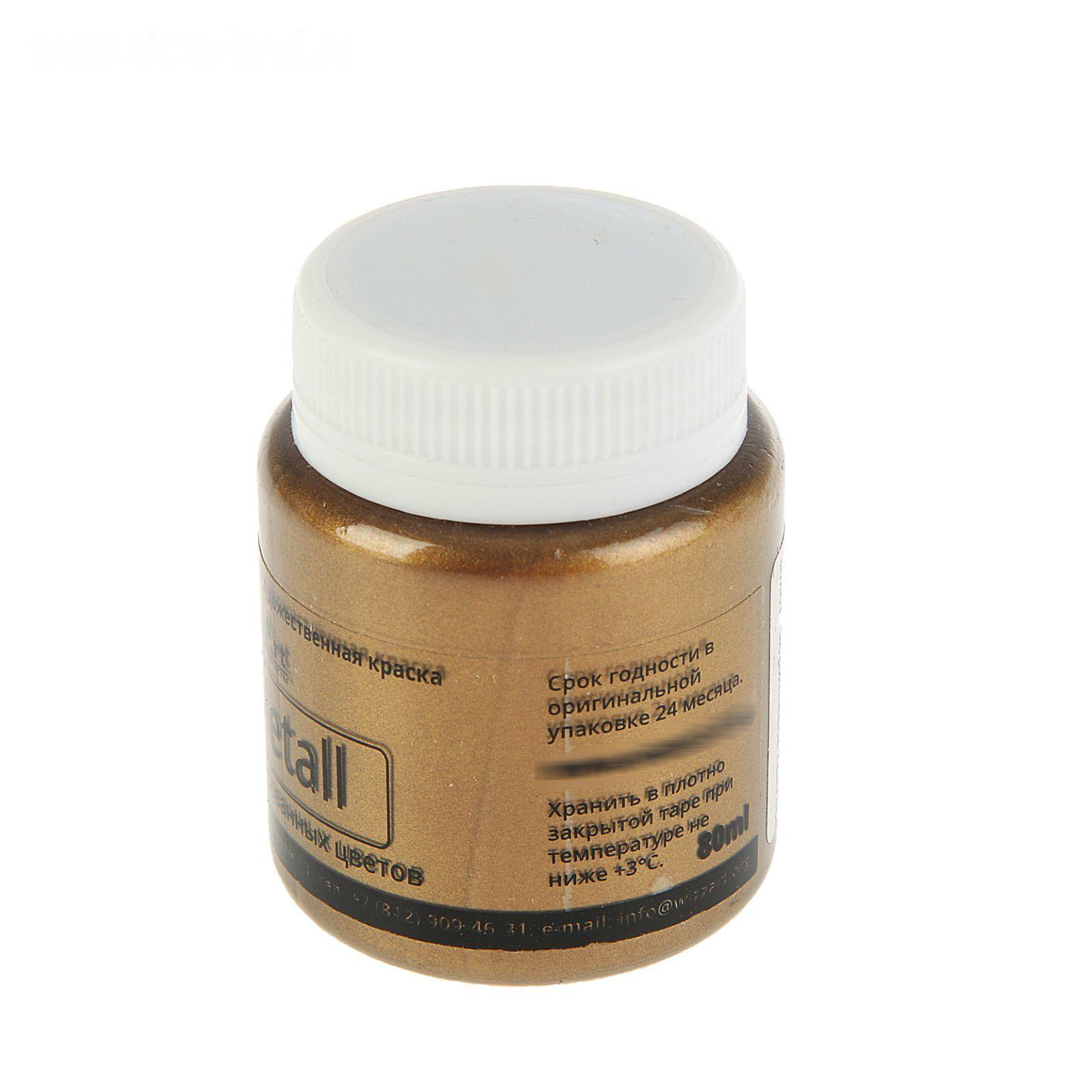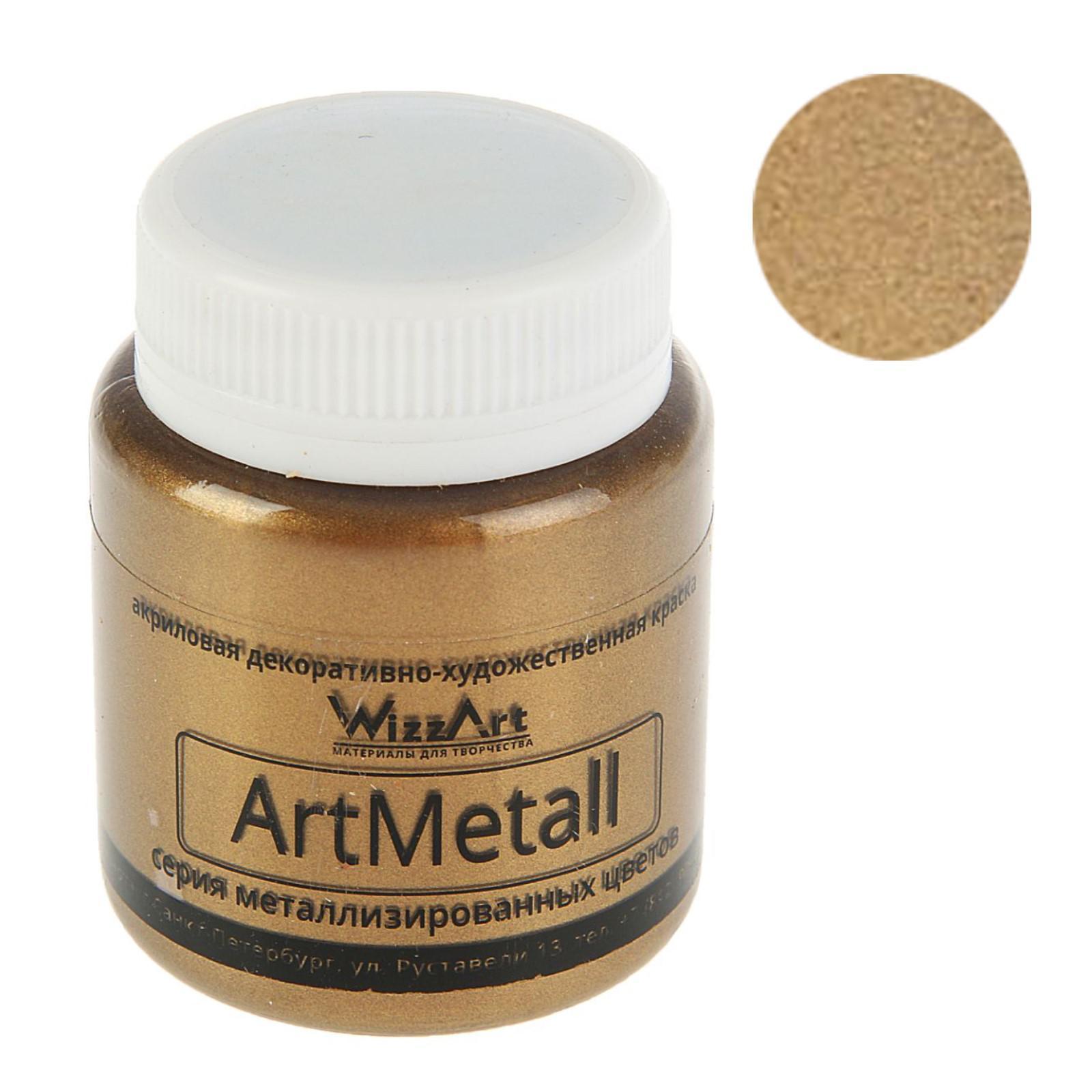 Краска акриловая Metallic, 80 мл, WizzArt, золото коричнево-светлое, металлик