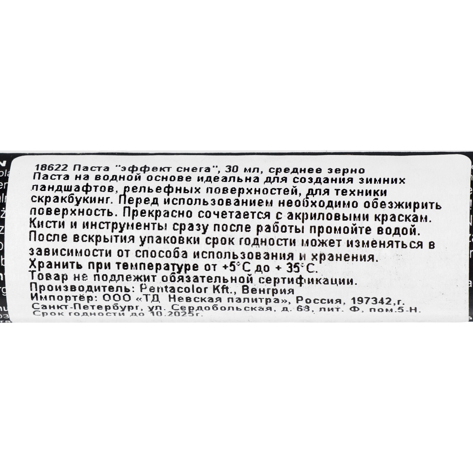 Паста текстурная Pentart, 30 мл, эффект снега, среднее зерно