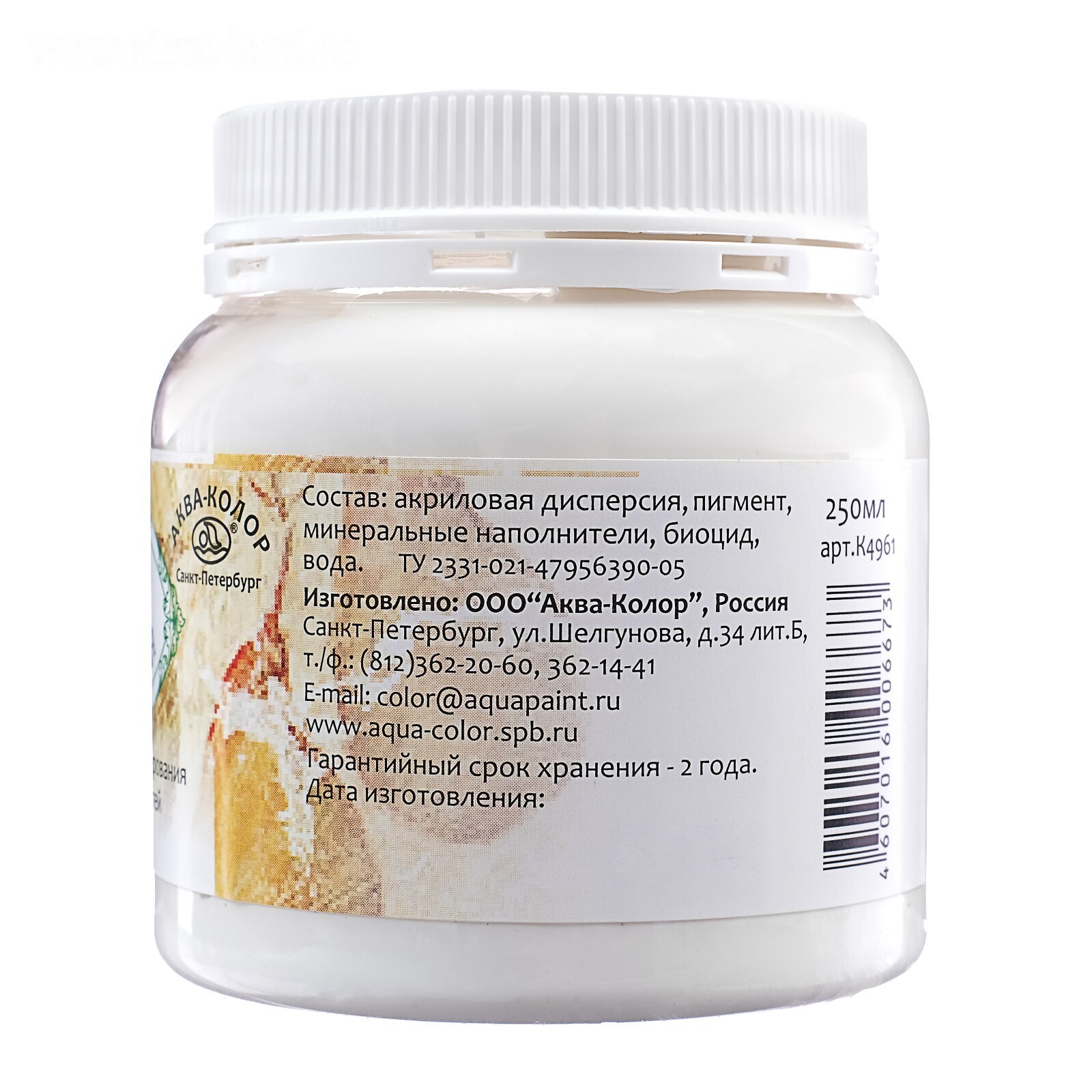 Паста текстурная, белая, тонкая, 250 мл, «Аква-Колор», акриловая