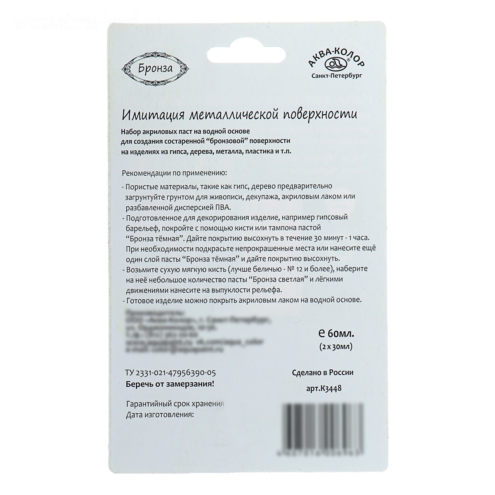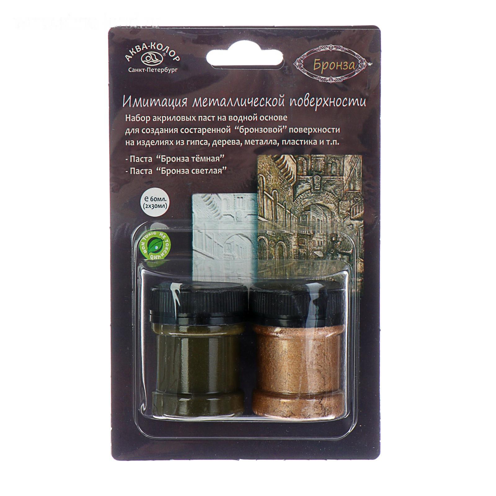 Паста Имитация металла, набор, 2 штуки х 30 мл, цвет бронза, «Аква-Колор» акрил на водной основе