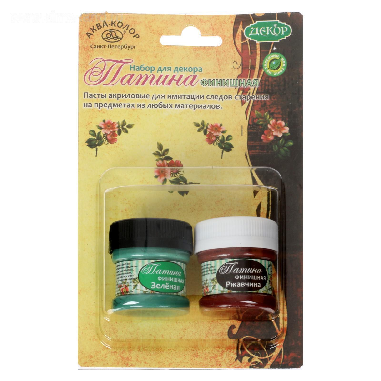 Патина финишная, набор: краска акриловая 2 цвета х 50 мл, №1 ржавчина, зелёная
