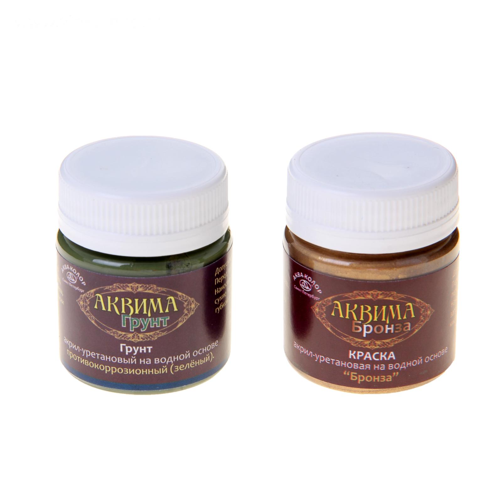 Поталь жидкая, набор 80 мл: краска акриловая, бронза, 40 мл, грунт 40 мл