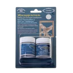 Поталь жидкая, набор 80 мл: краска акриловая, серебряная 40 мл, грунт 40 мл