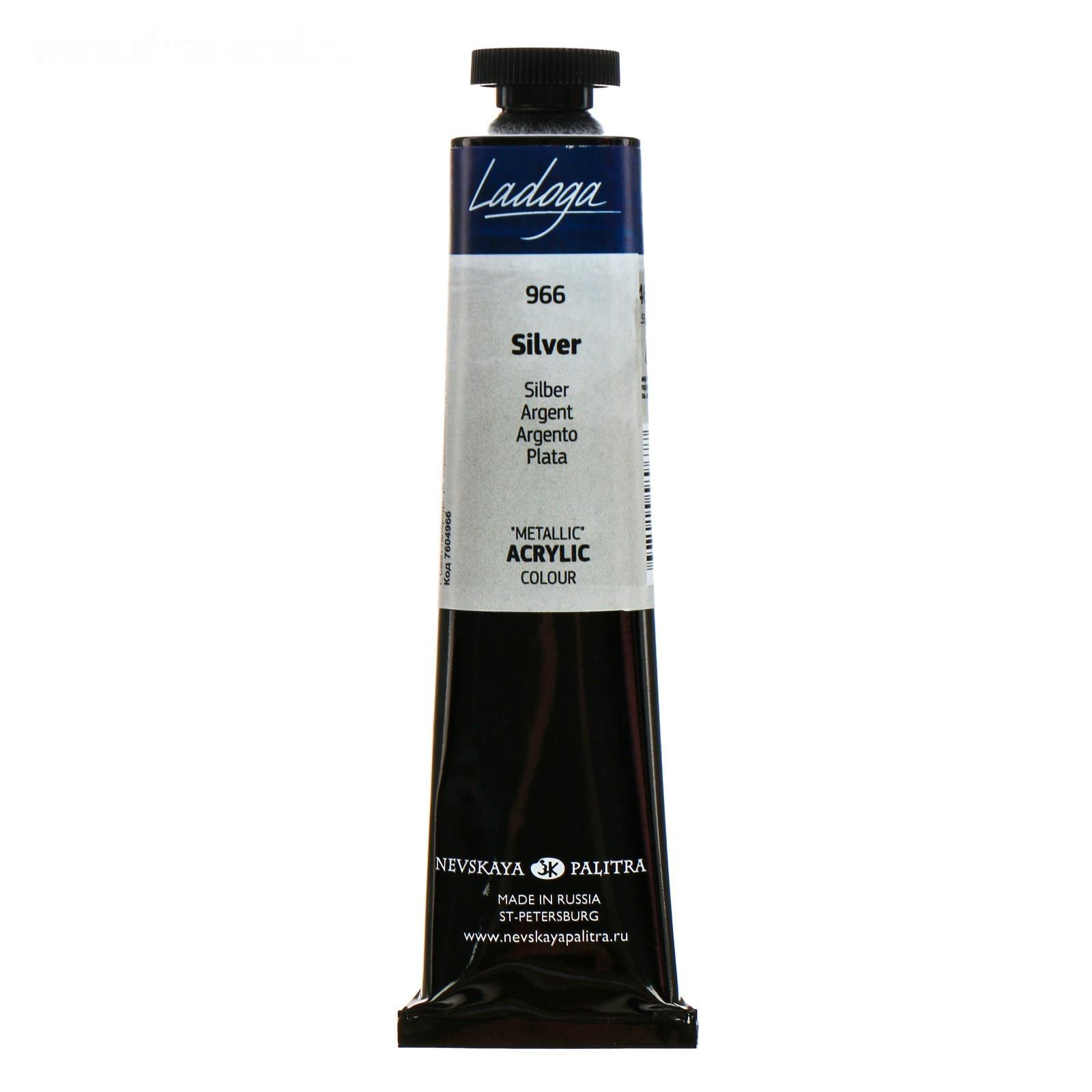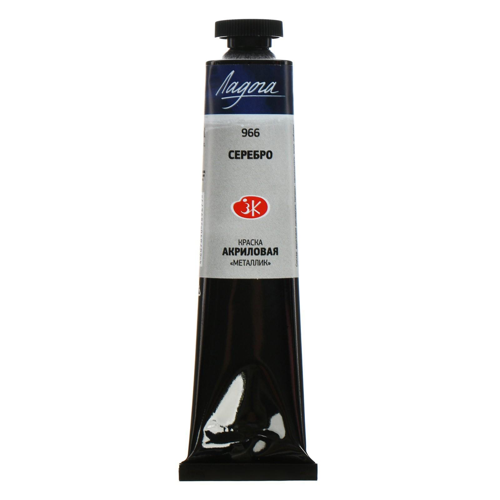 Краска акриловая художественная "Ладога", 46 мл, Metallic, серебро, в тубе