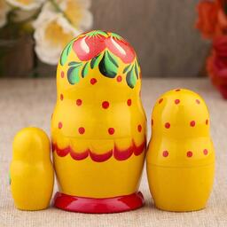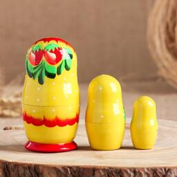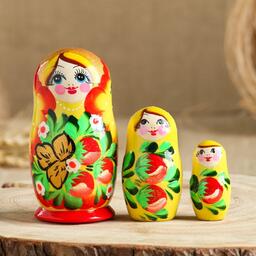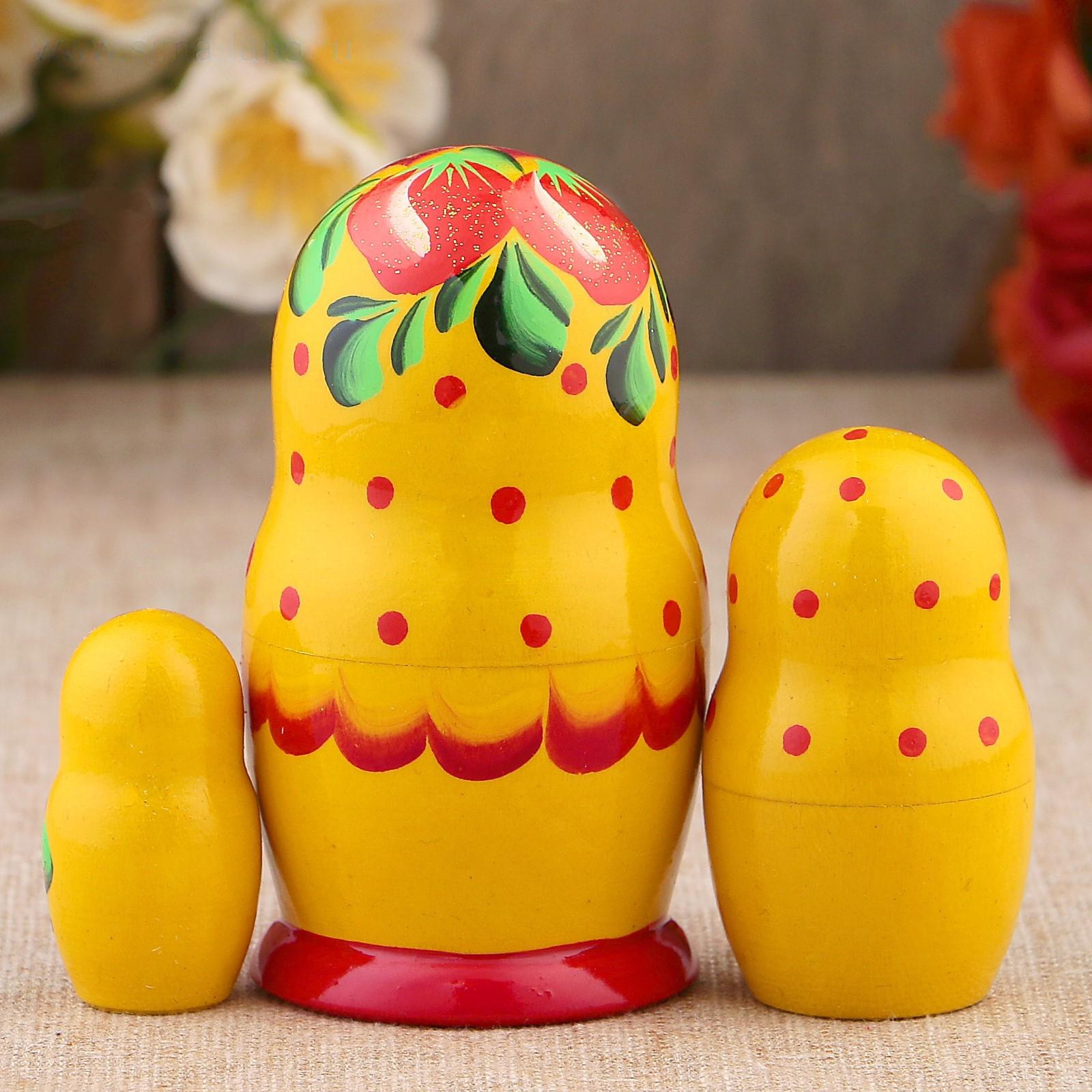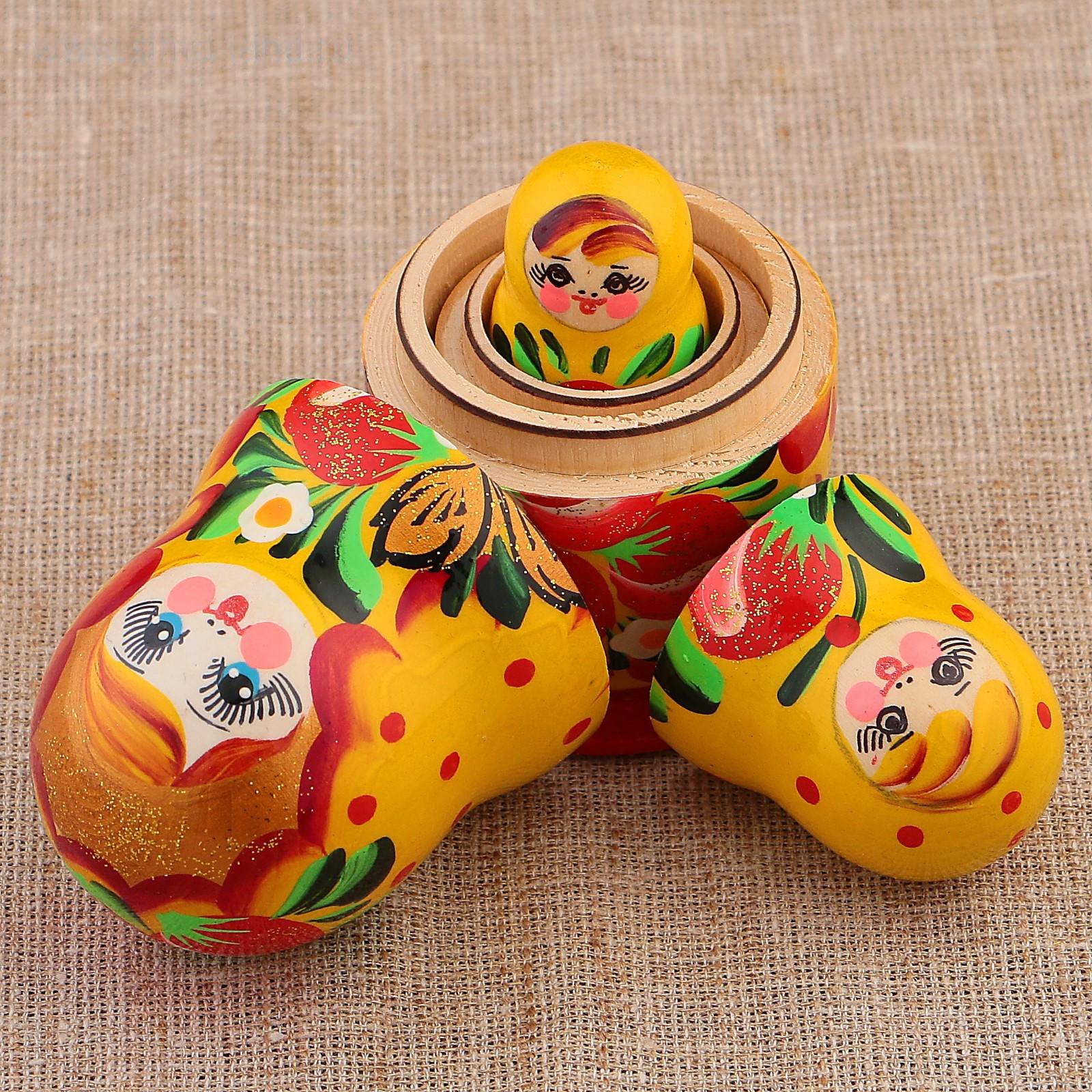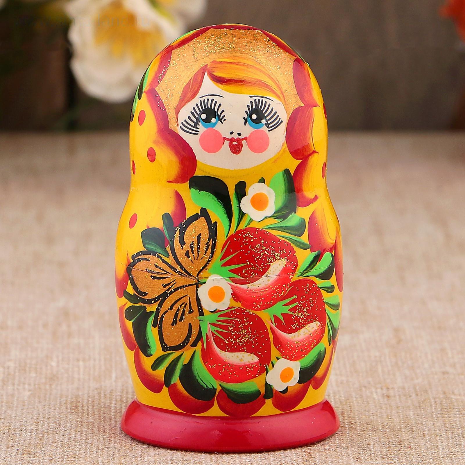 Матрёшка «Земляничка», жёлтое платье, 3 кукольная, 10 см