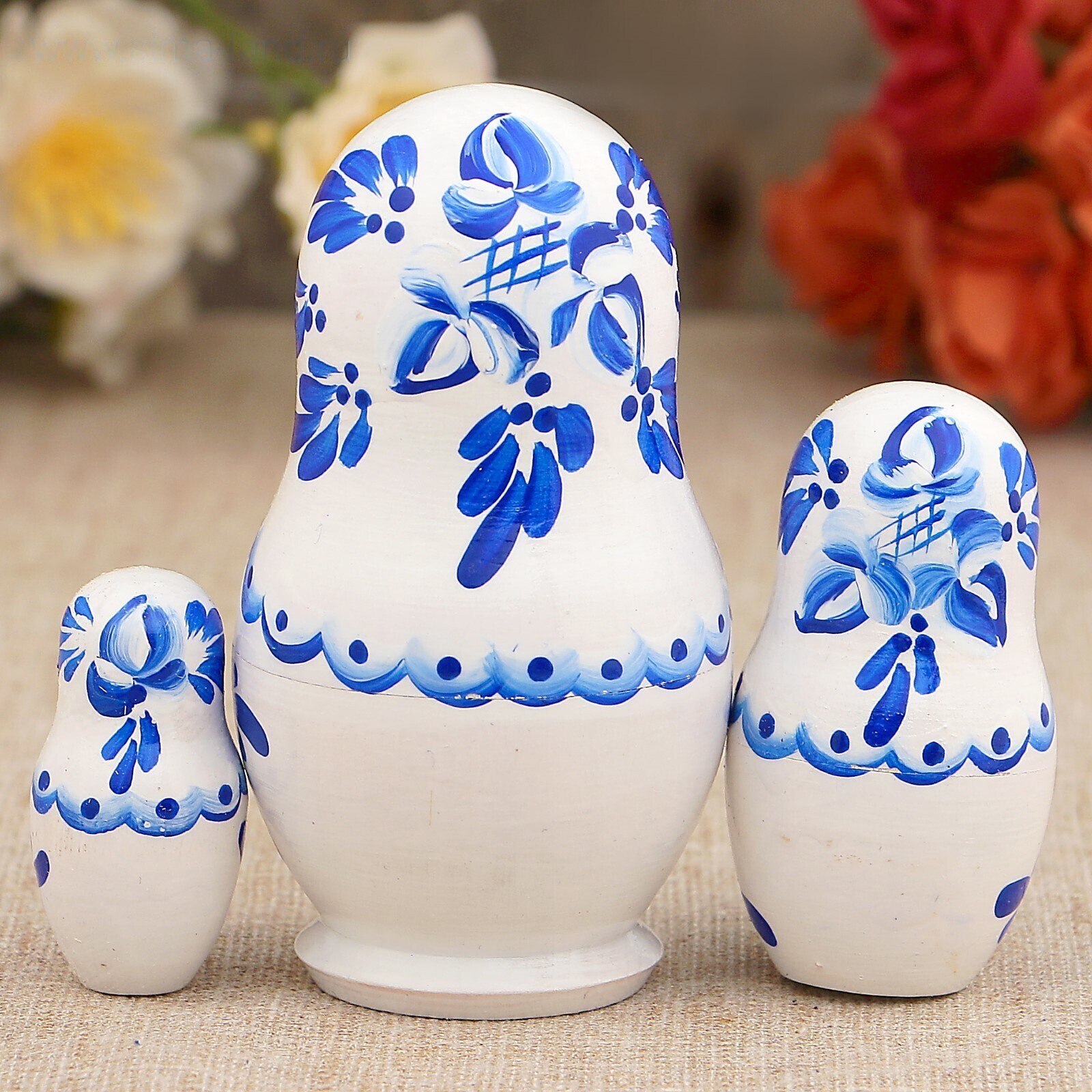 Матрёшка «Гжель», белое платье, 3 кукольная, 9 см