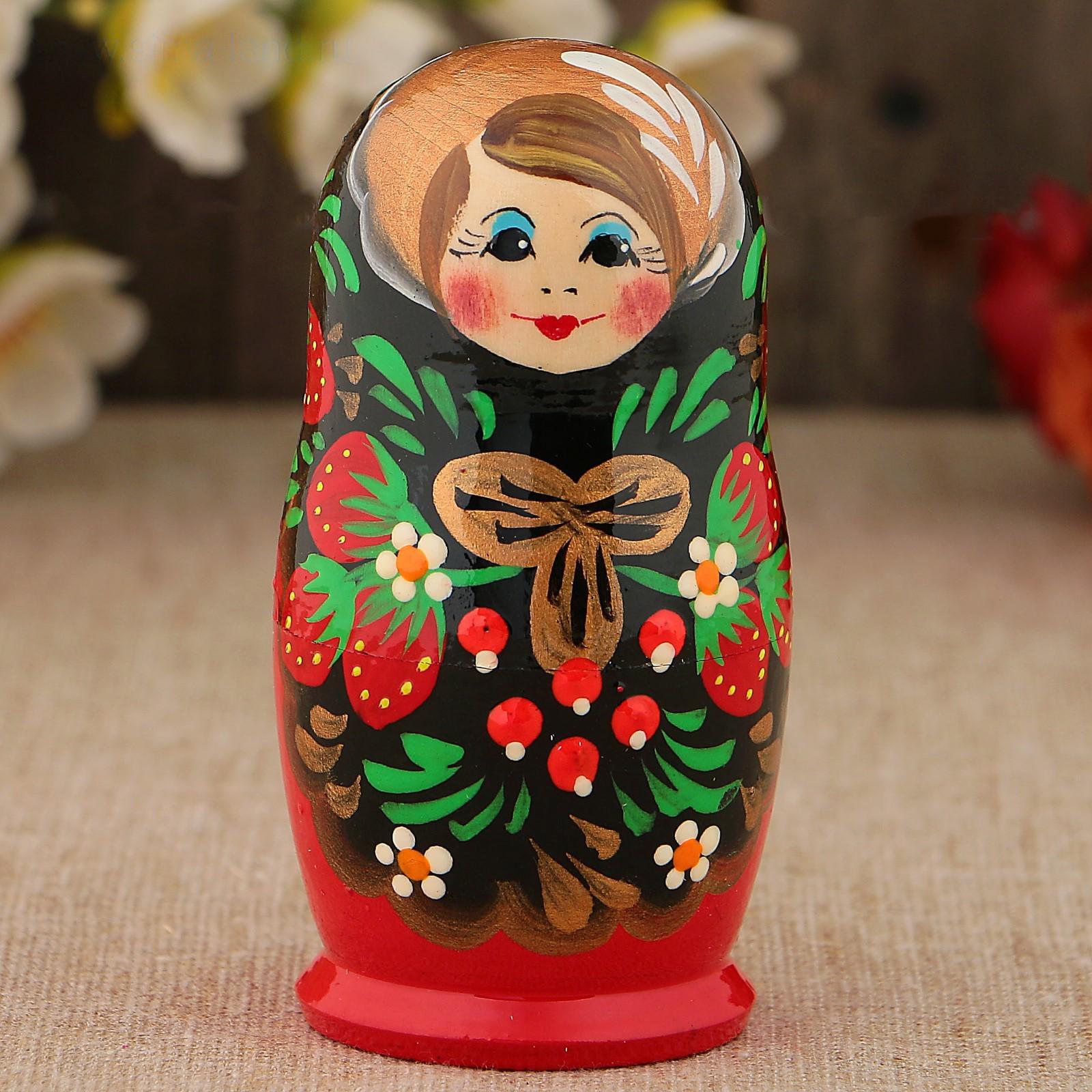 Матрёшка «Хохлома», чёрный платок, 3 кукольная, 9 см