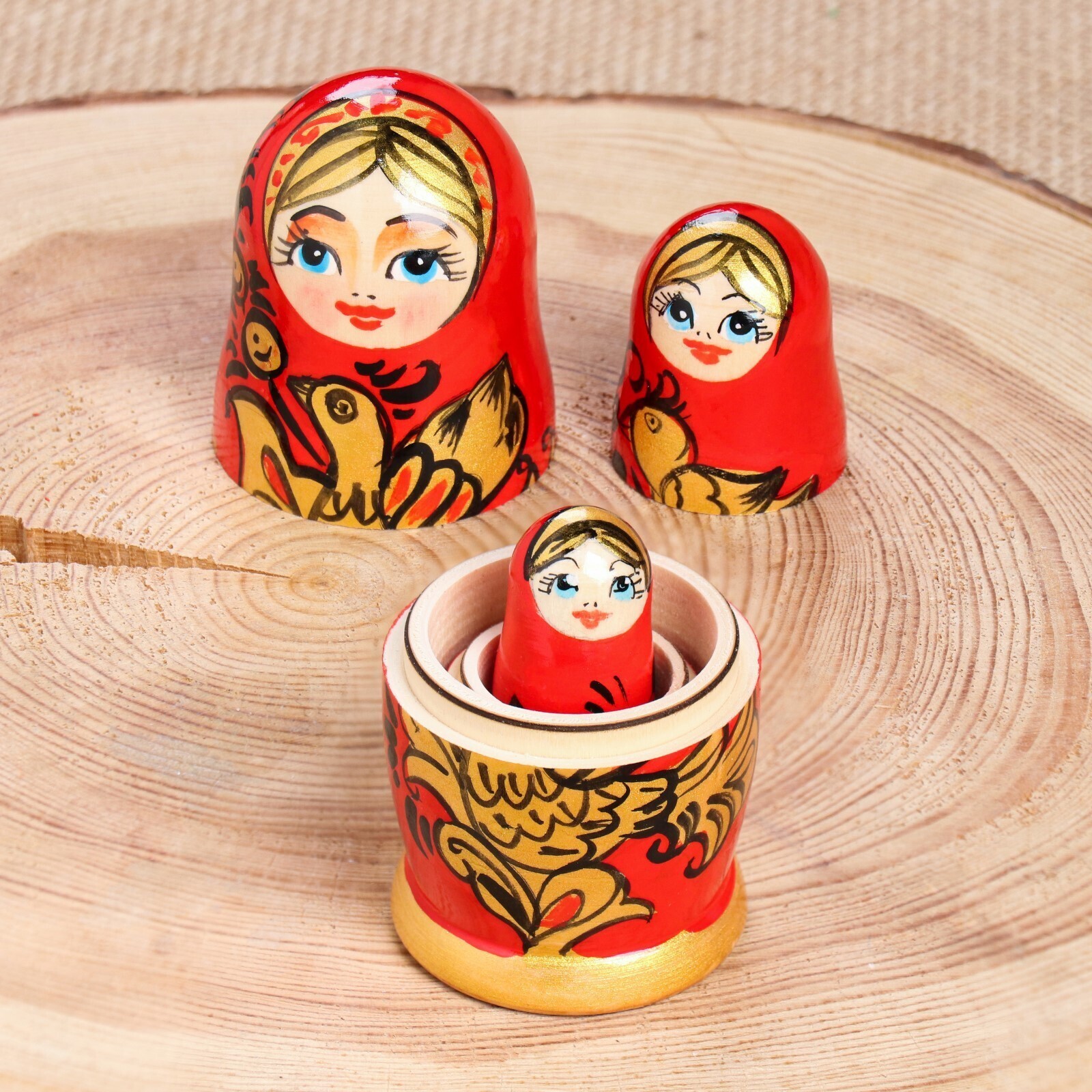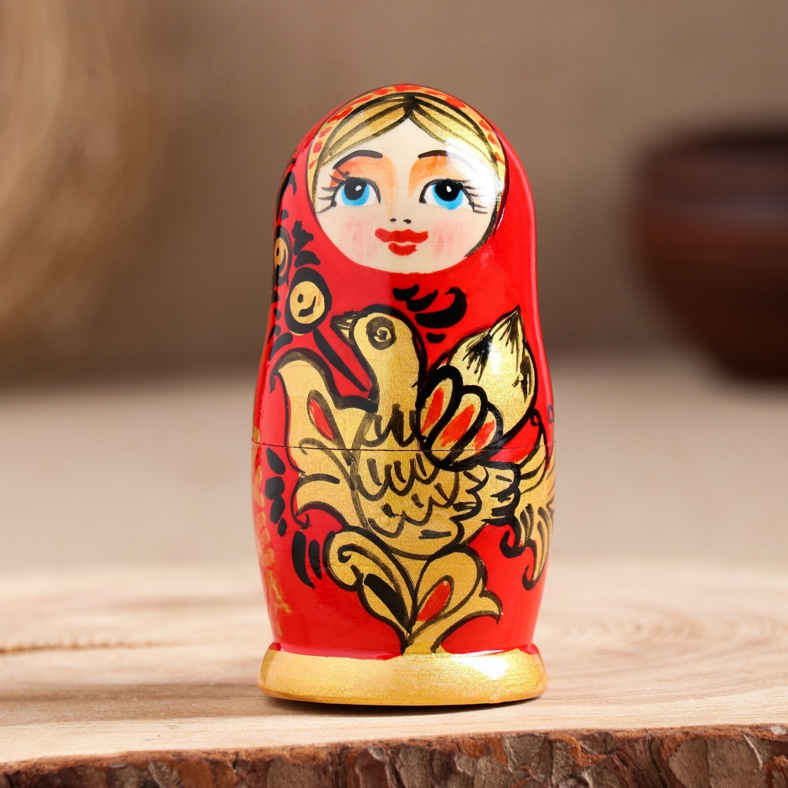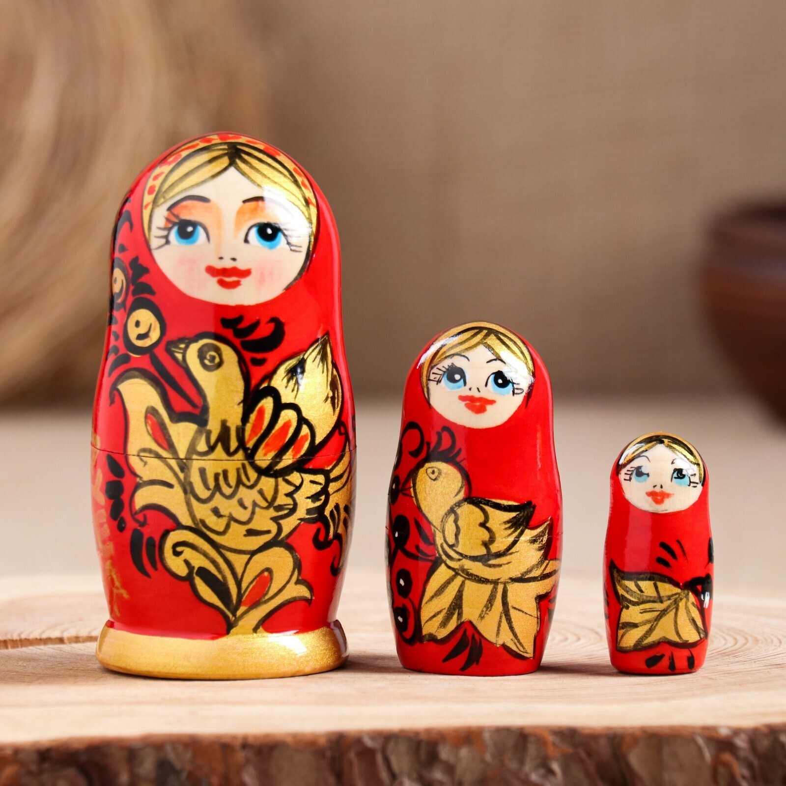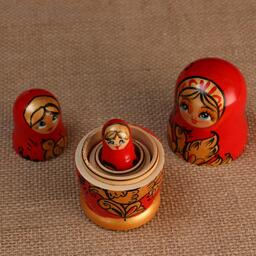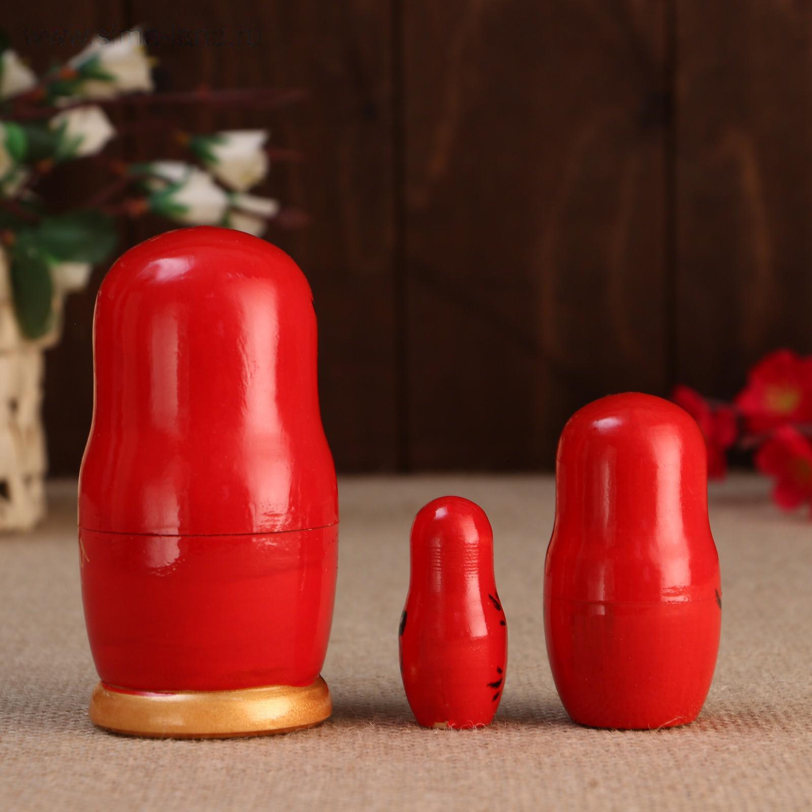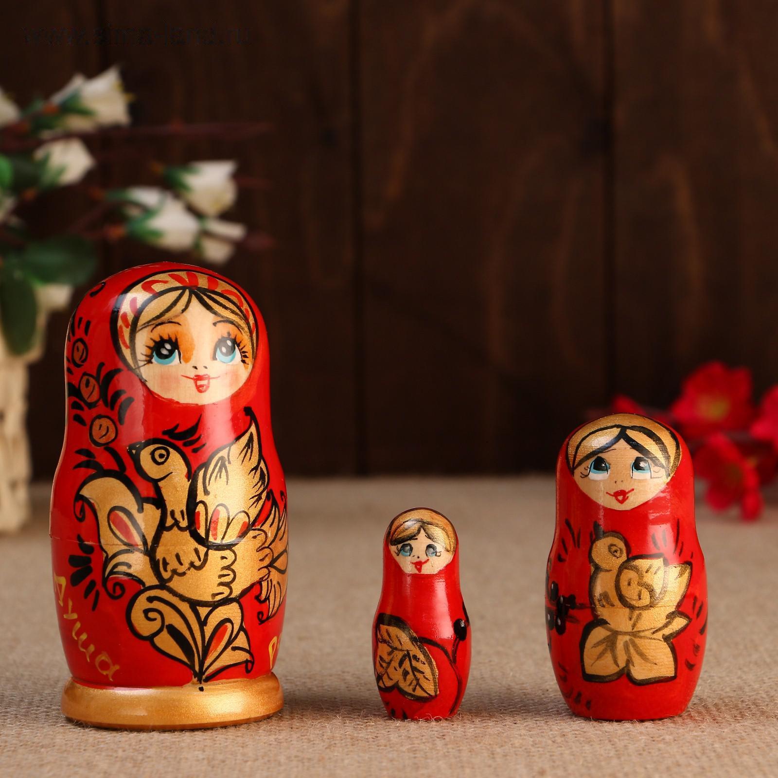 Матрешка " Душа России",3 кукольная, красный фон, 10 см