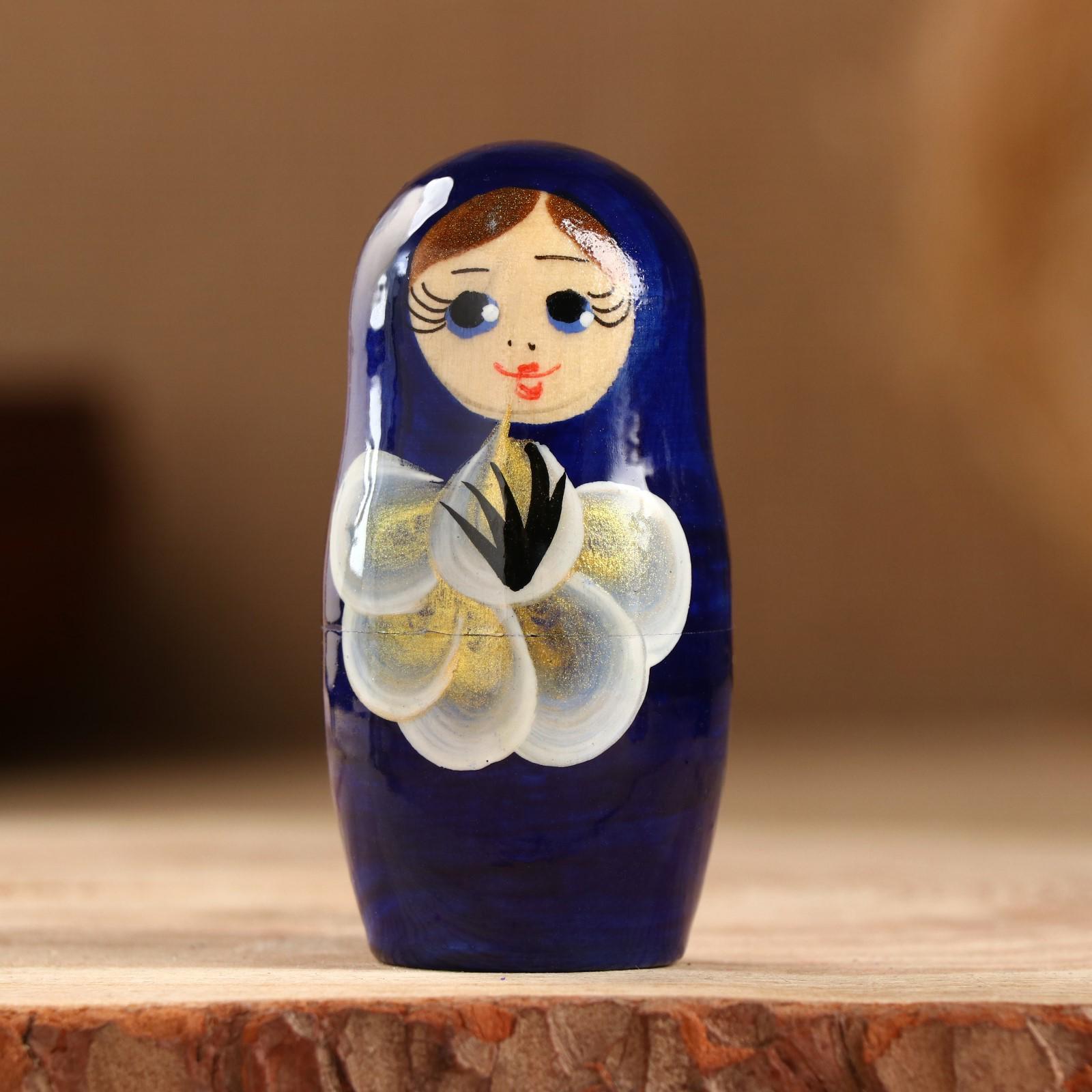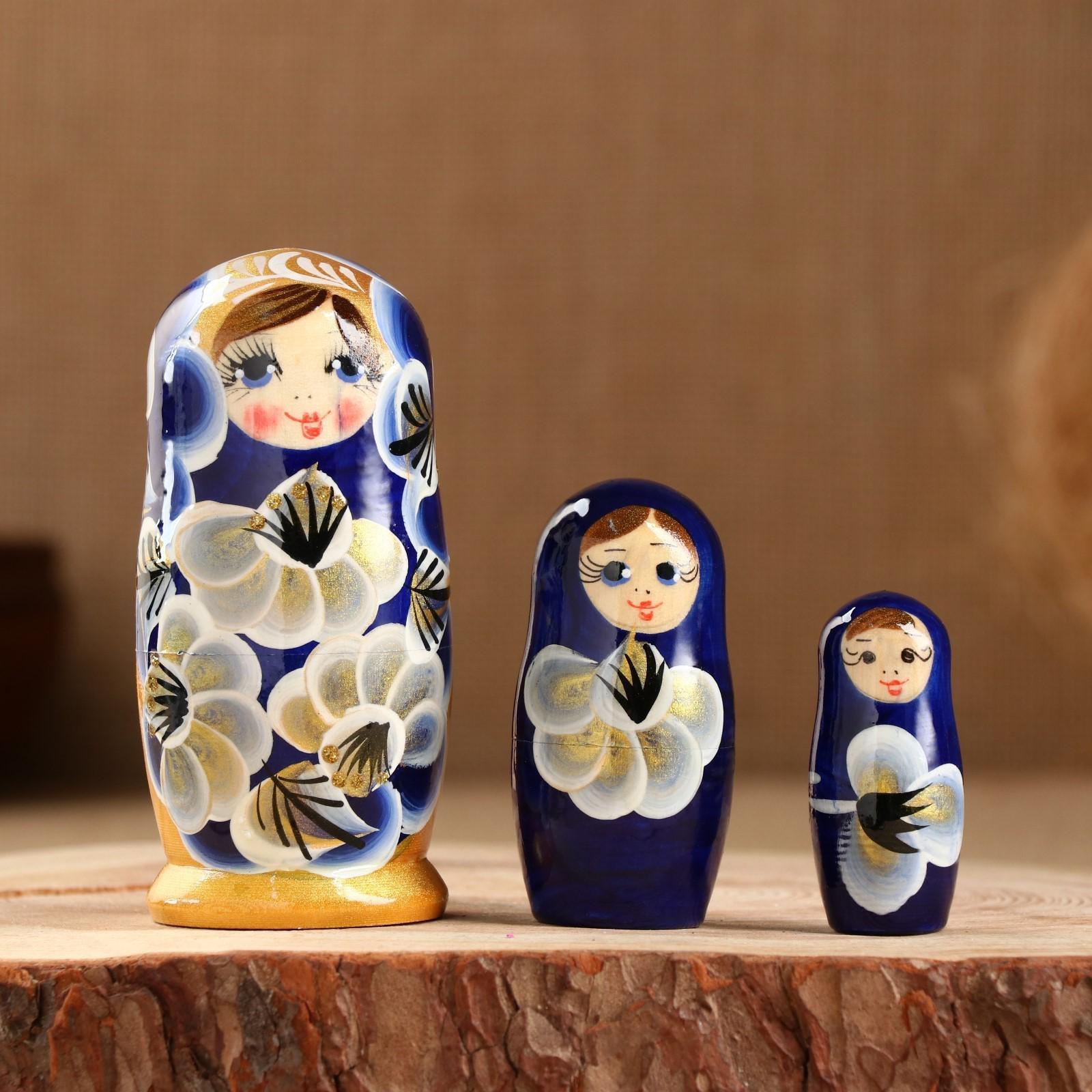 Матрёшка «Марина», синее платье, 3 кукольная. 10 см