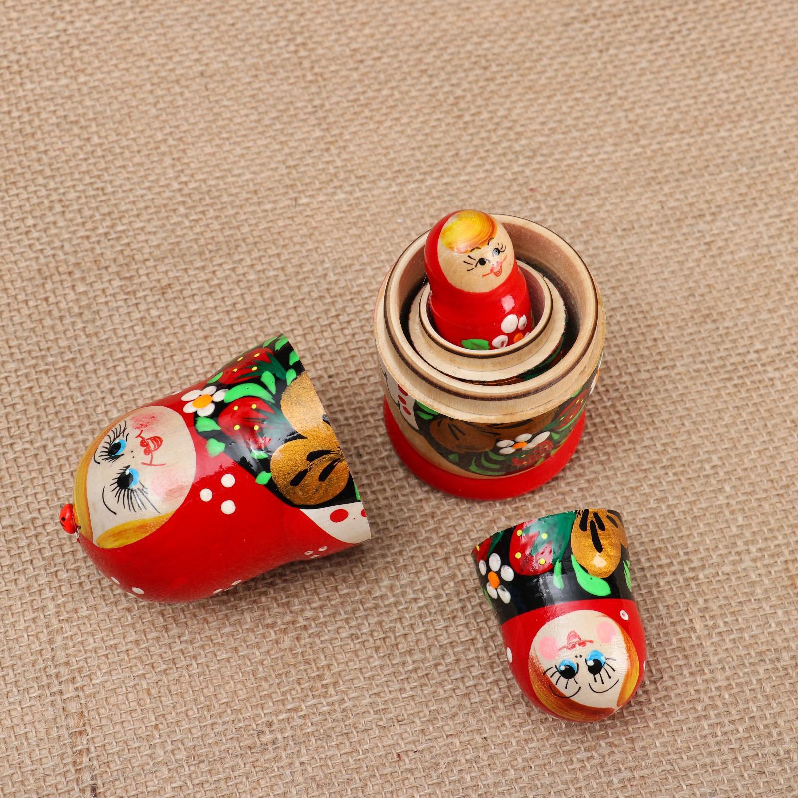 Матрёшка 3-х кукольная "Даша" с божьей коровкой, 11см, ручная роспись.