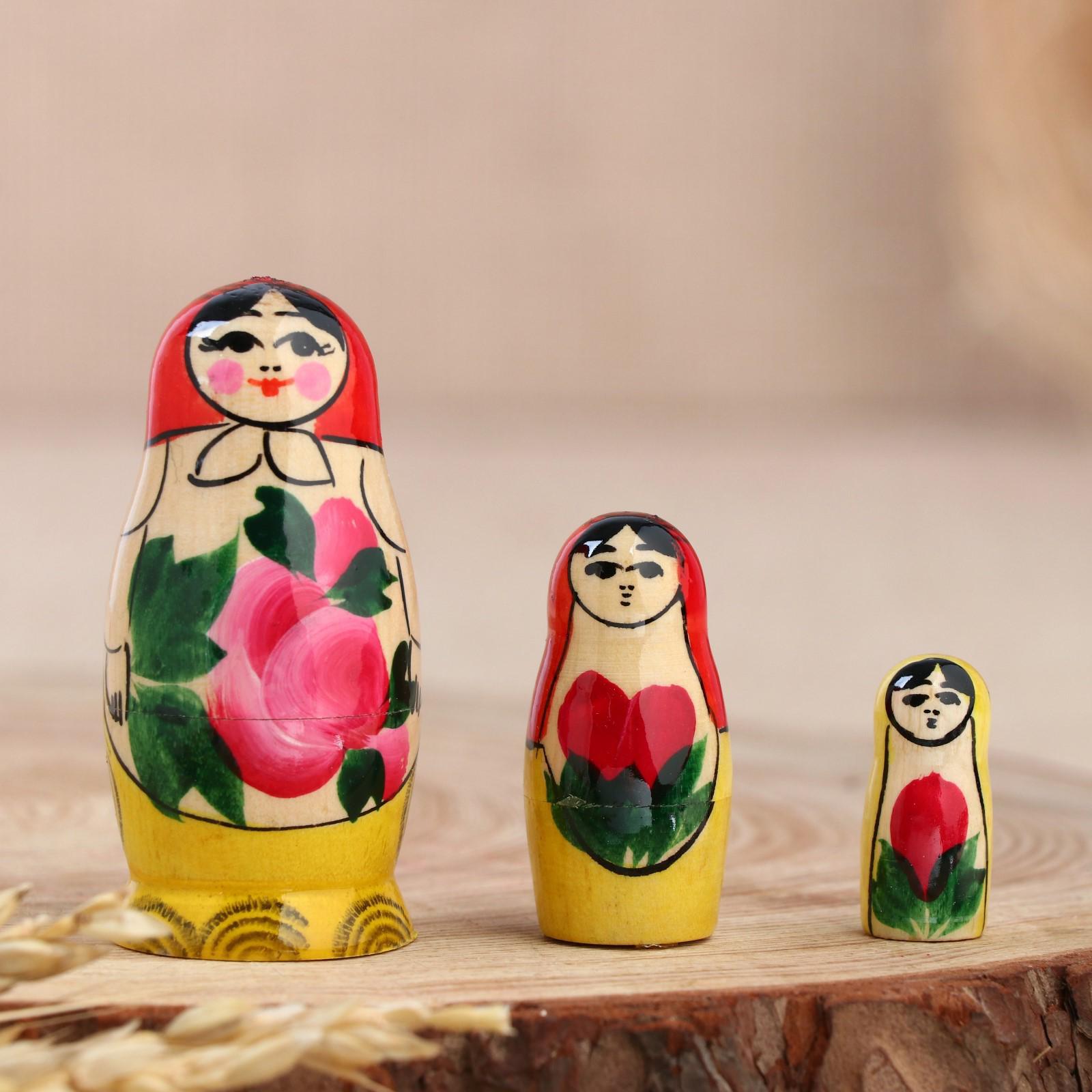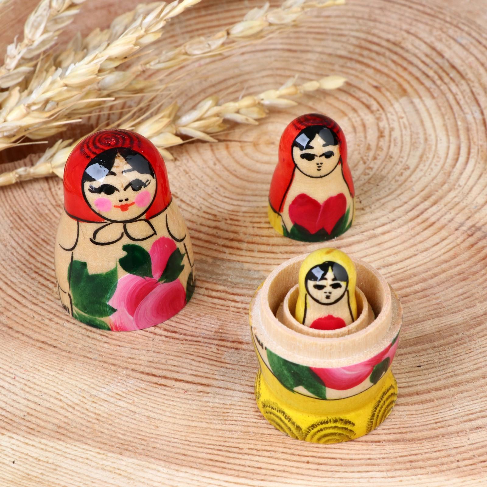 Матрёшка «Антонина», красный платок, 3 кукольная, 7 см