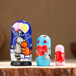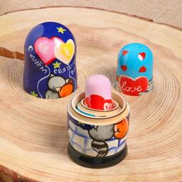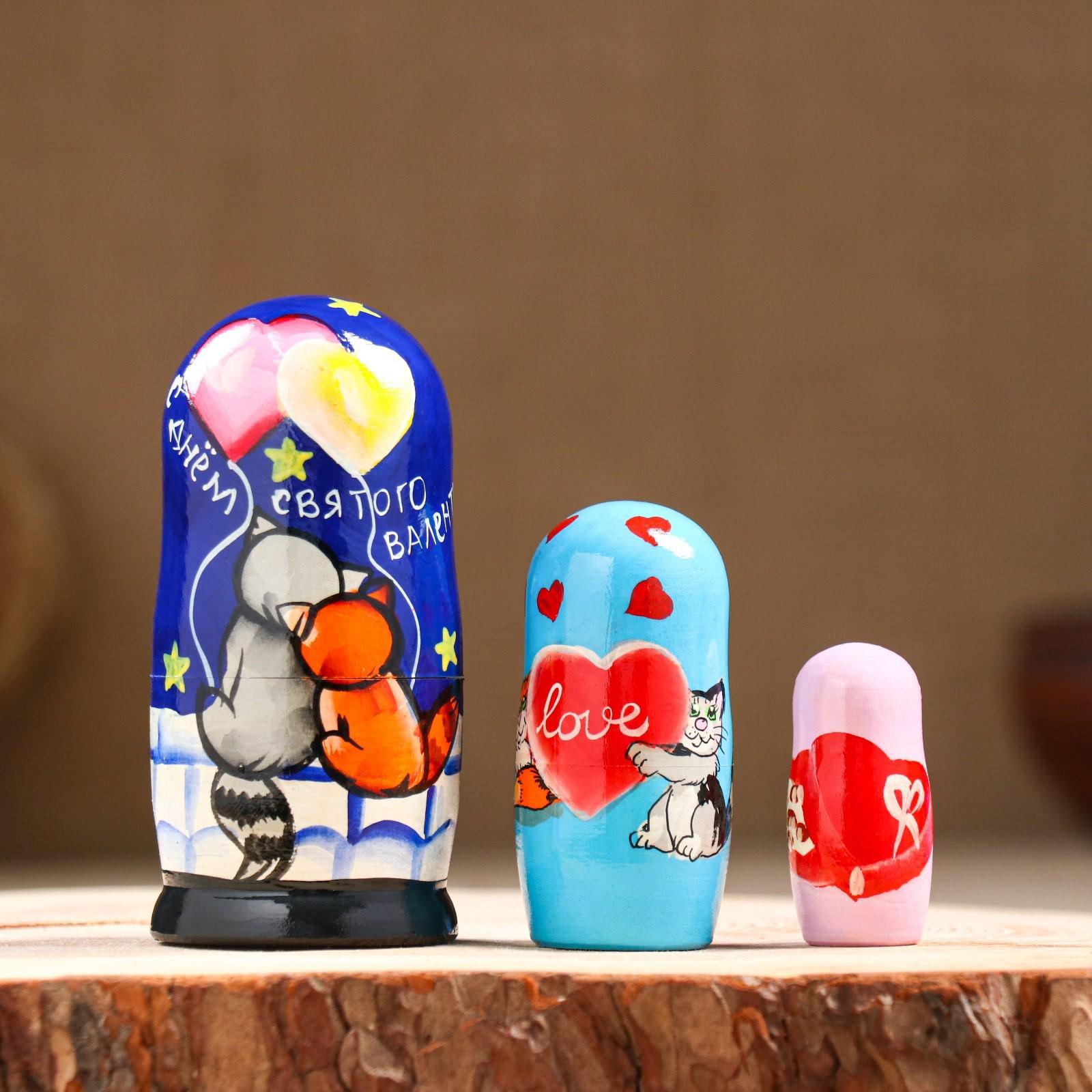 Матрешка "С днем Святого Валентина" , 3-кукольная, 9 см, ручная роспись