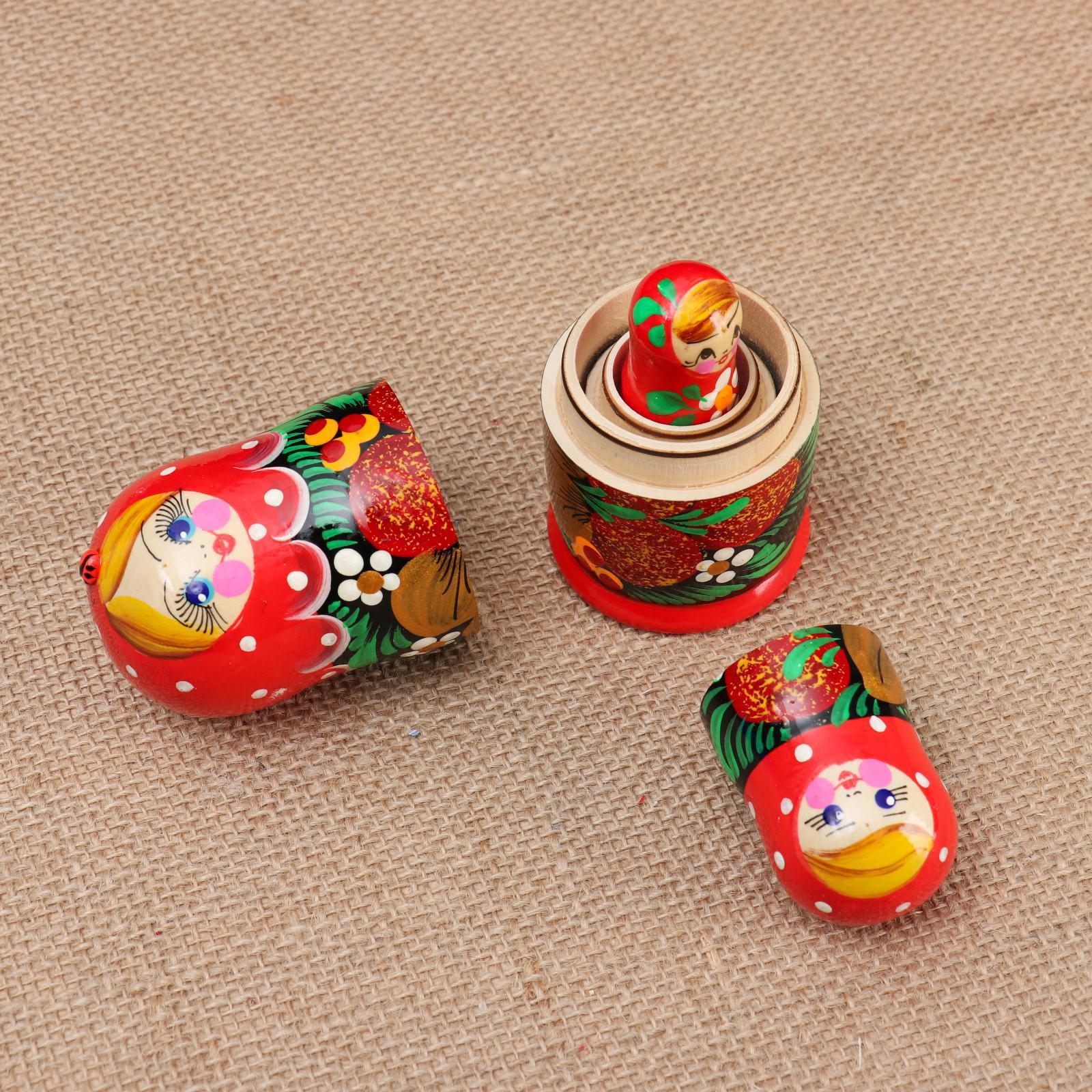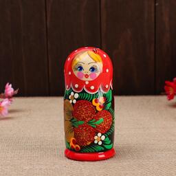 Матрёшка 3-х кукольная "Маша" с божьей коровкой, 11см, ручная роспись.