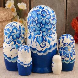 Матрёшка «Гжель», синее платье, 5 кукольная, 18 см