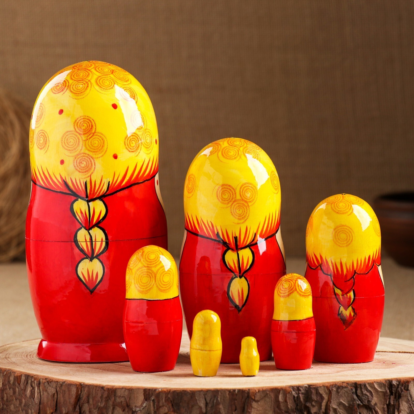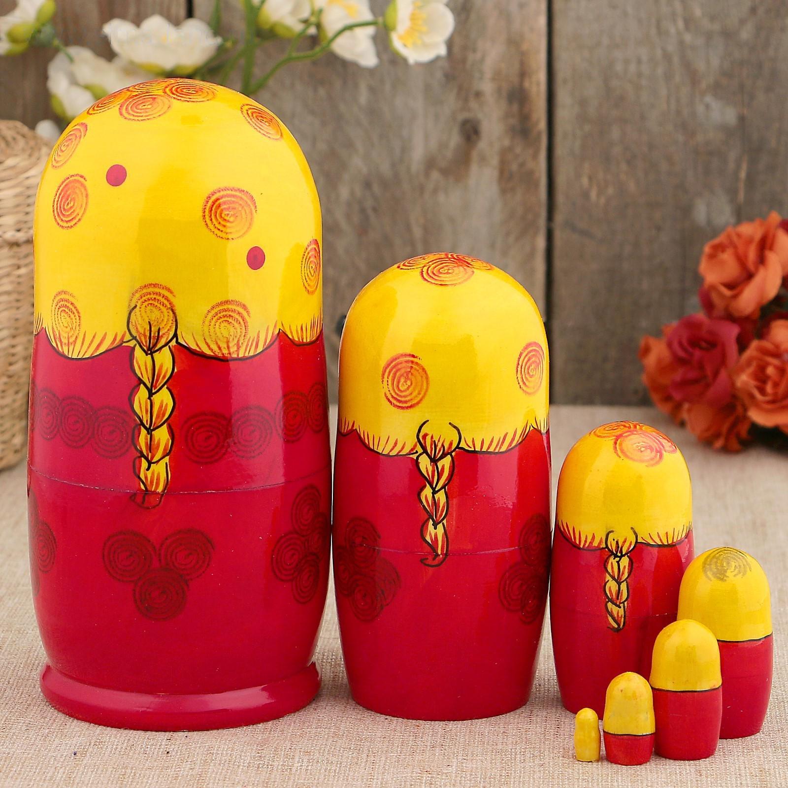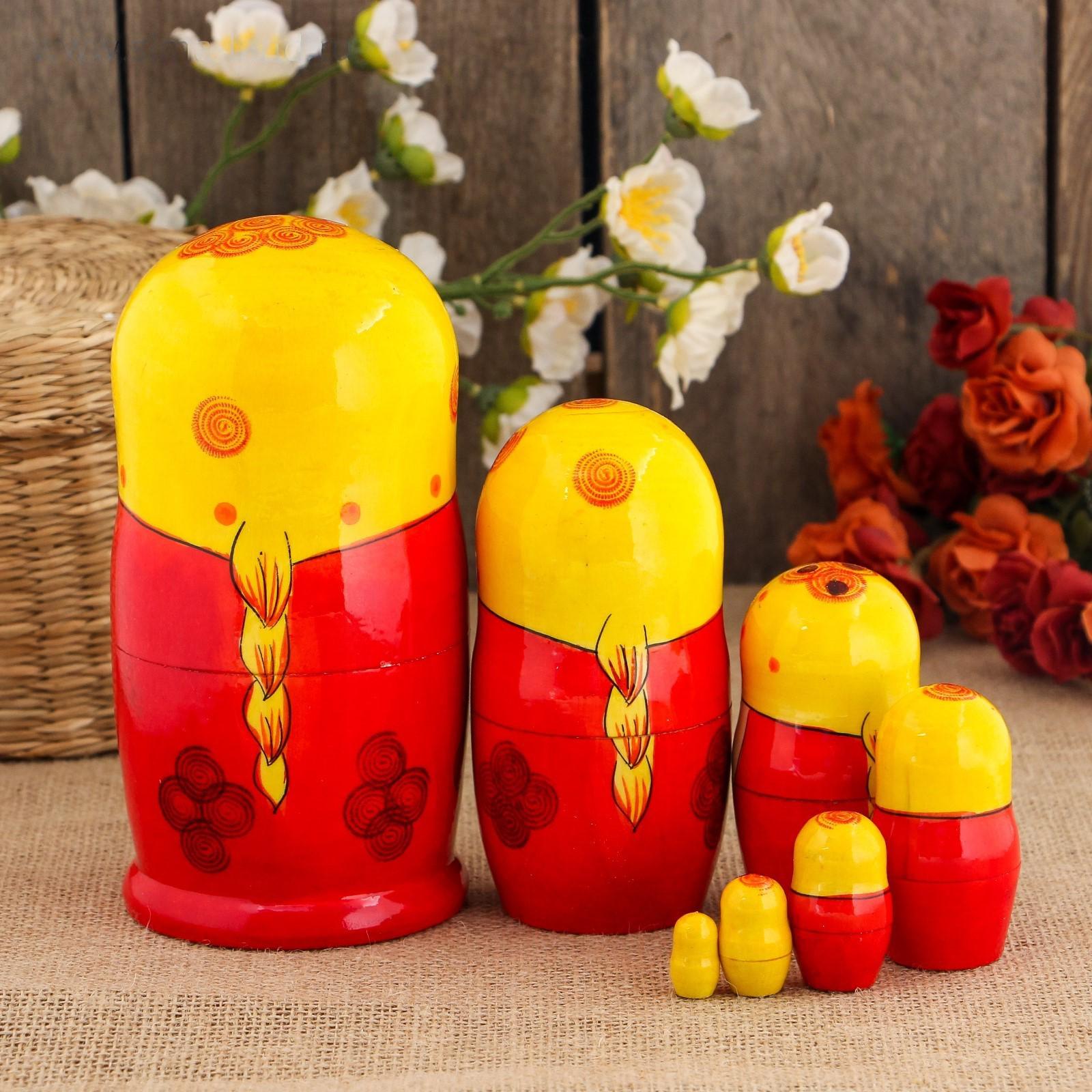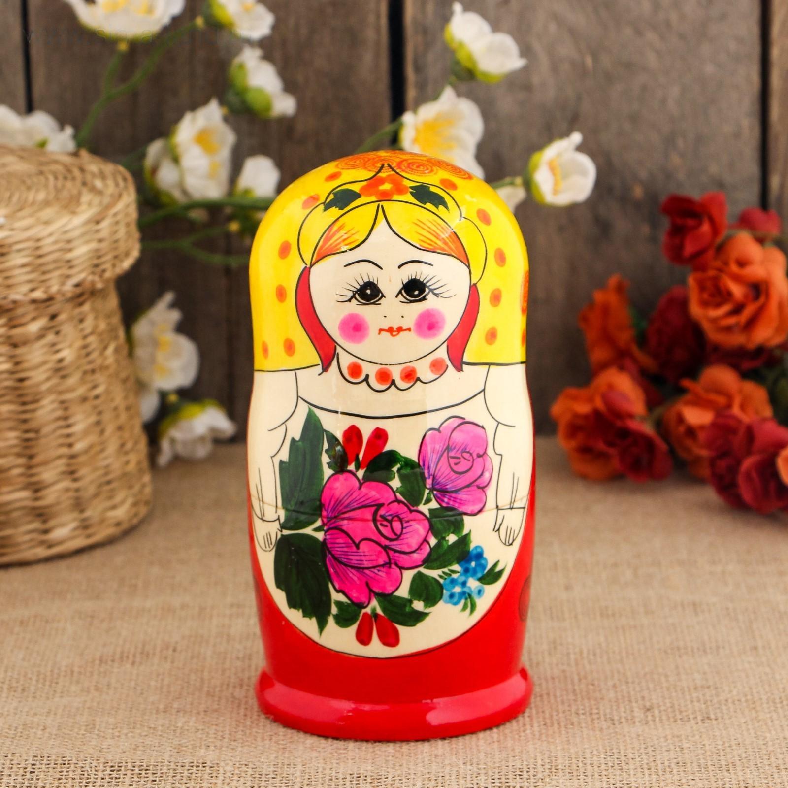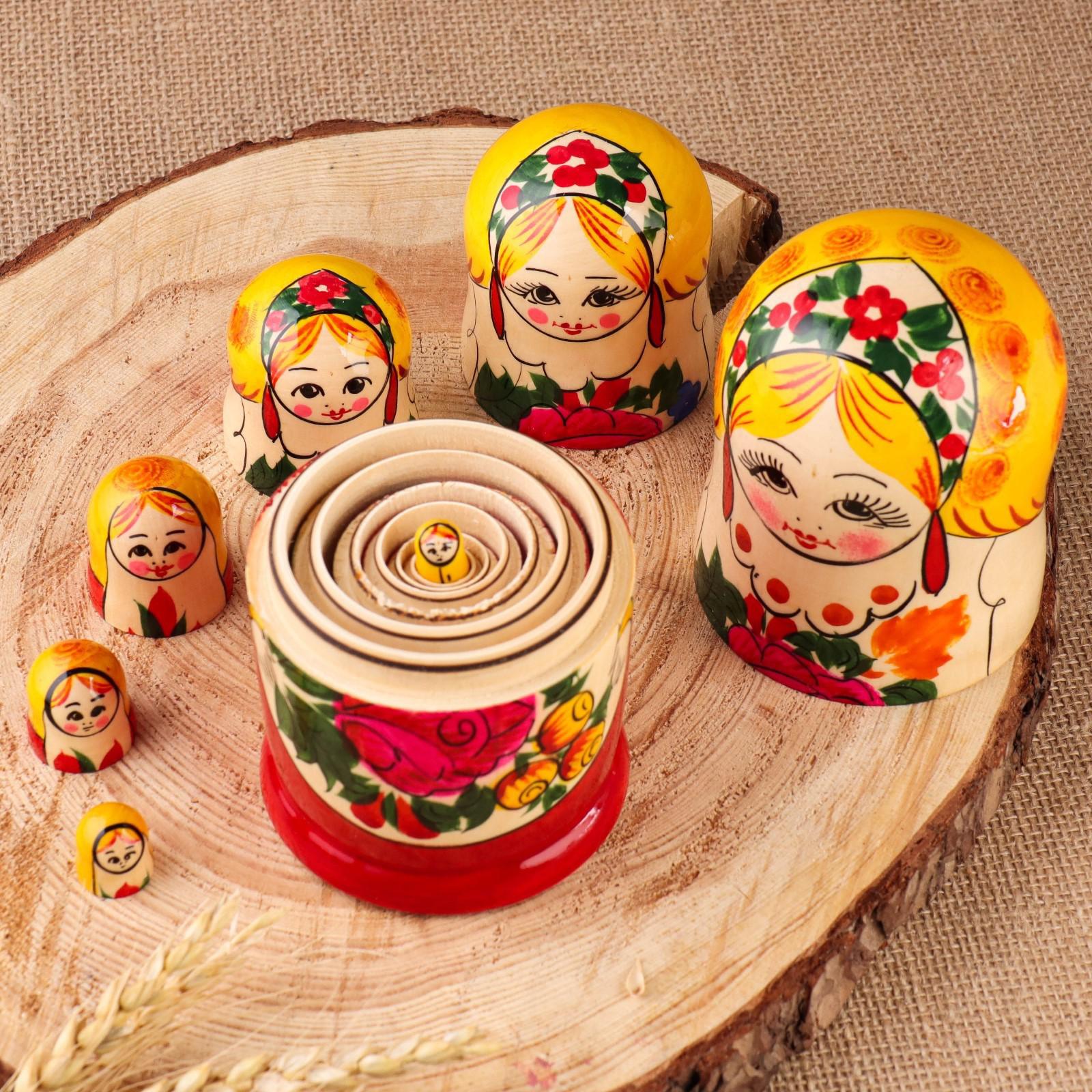 Матрёшка «Сударушка», жёлтый платок, 7 кукольная, 17 см, ручная работа