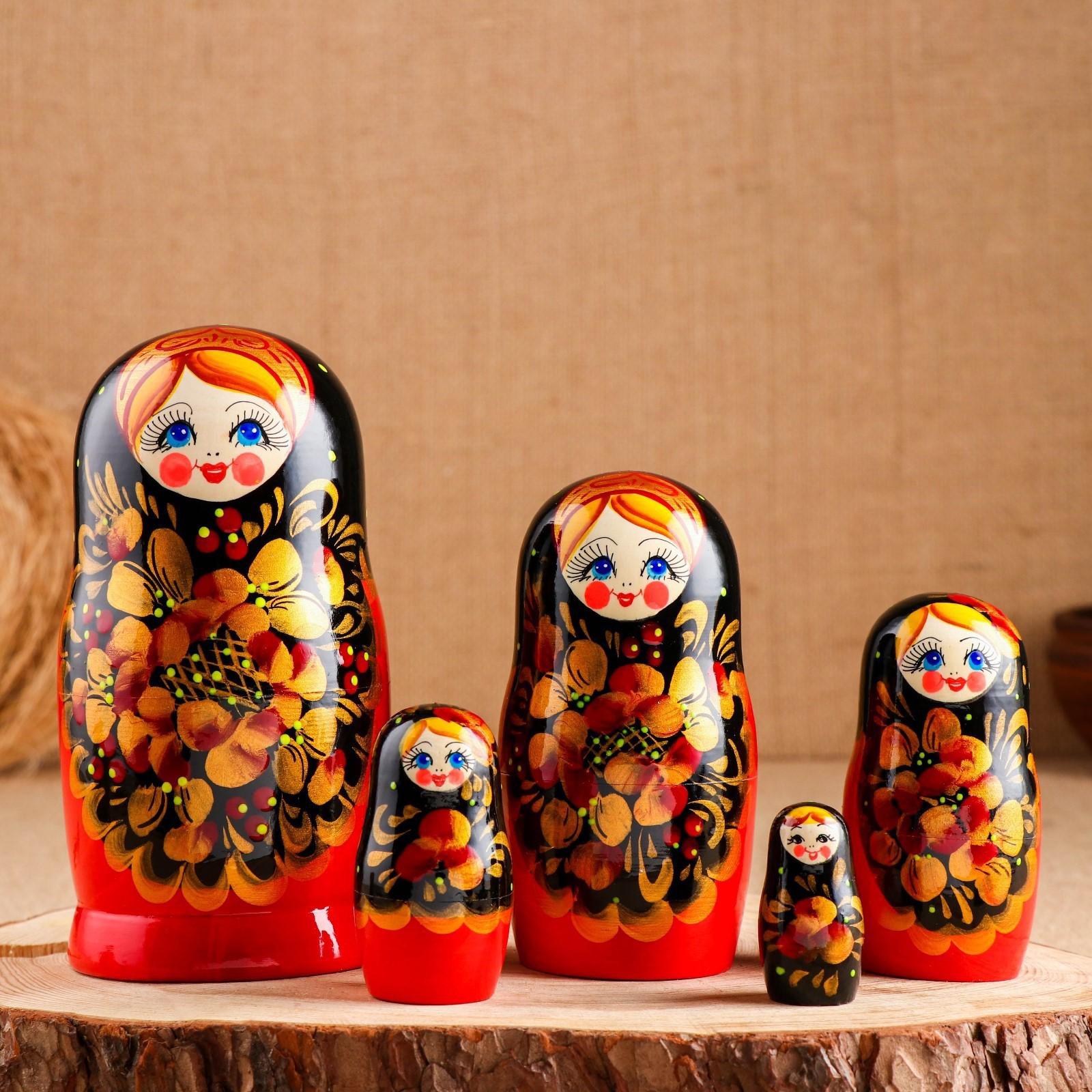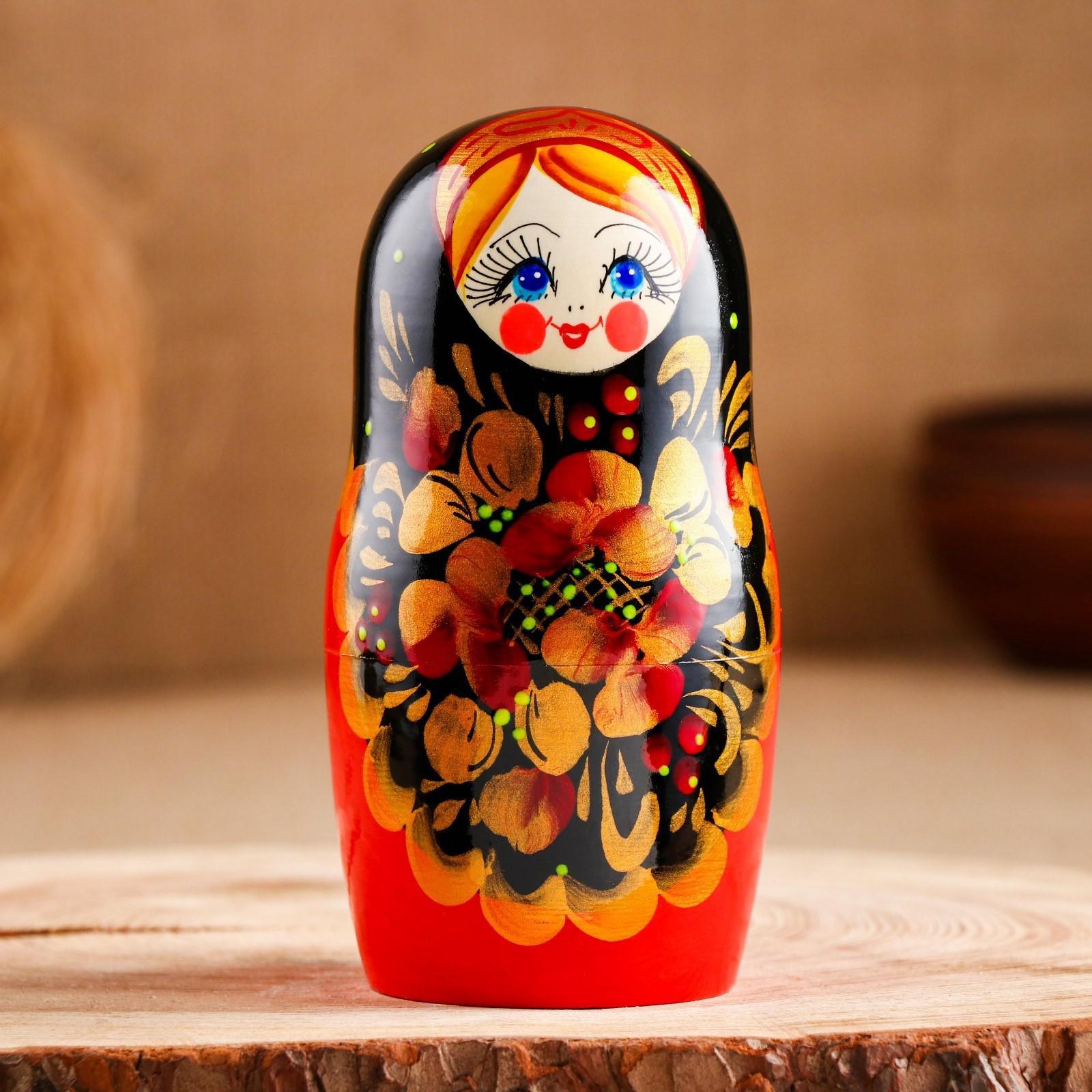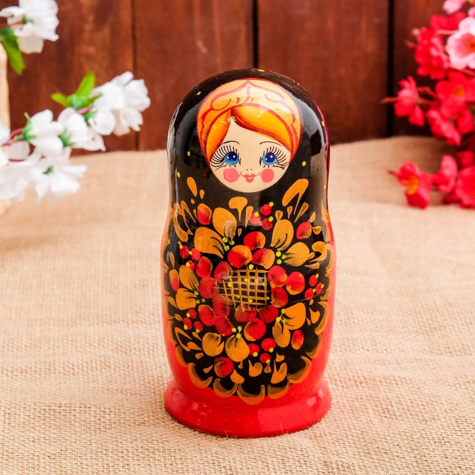 Матрёшка «Рябинка», чёрный платок, 5 кукольная, 18 см