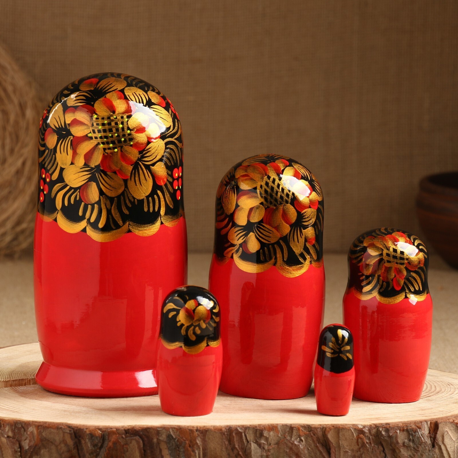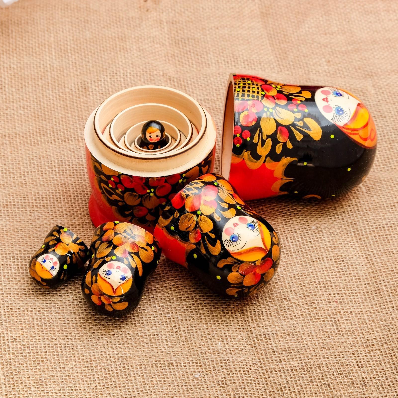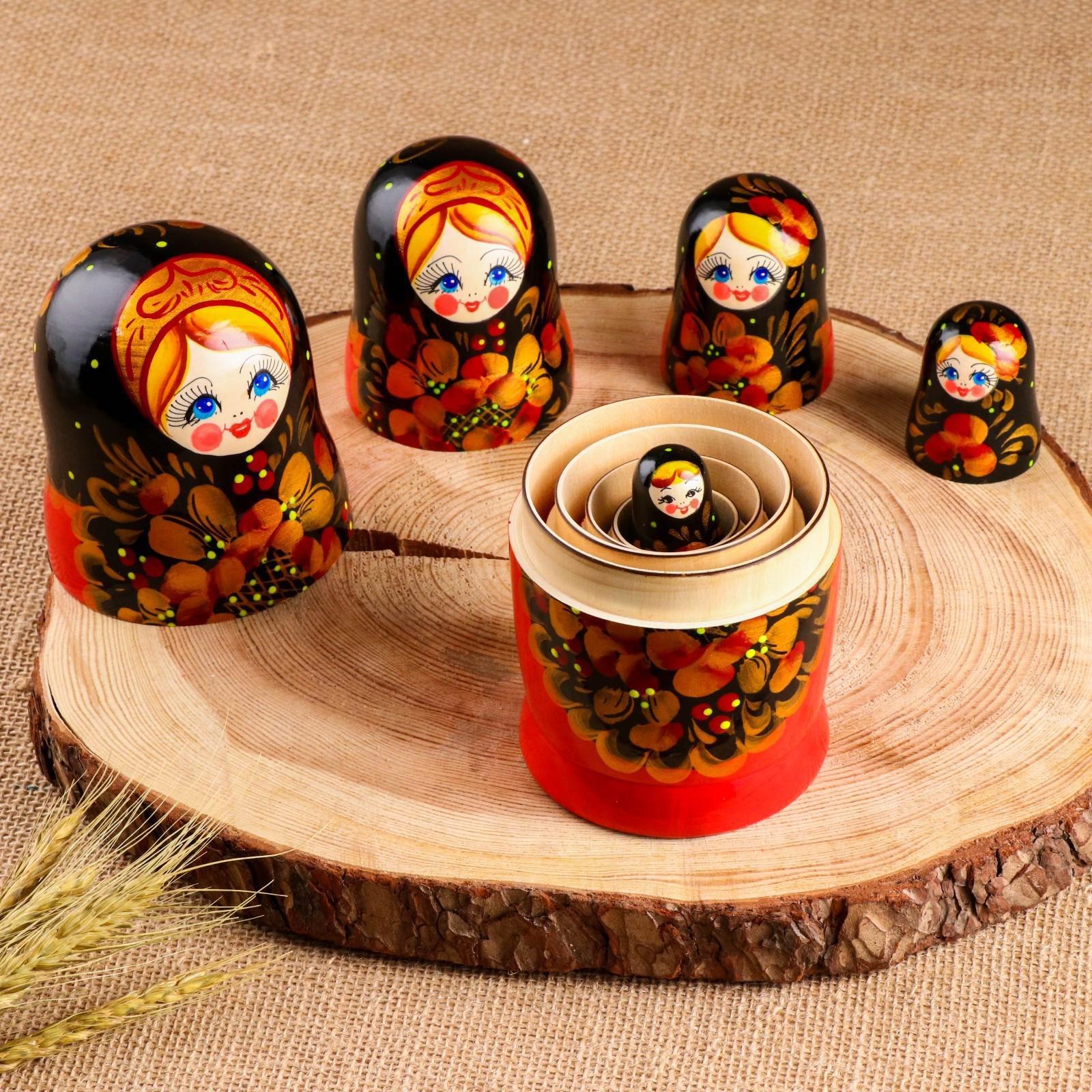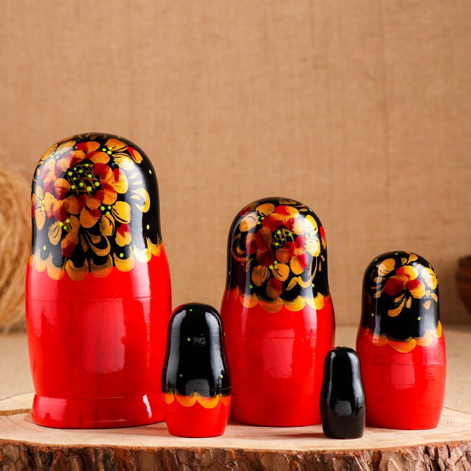 Матрёшка «Рябинка», чёрный платок, 5 кукольная, 18 см