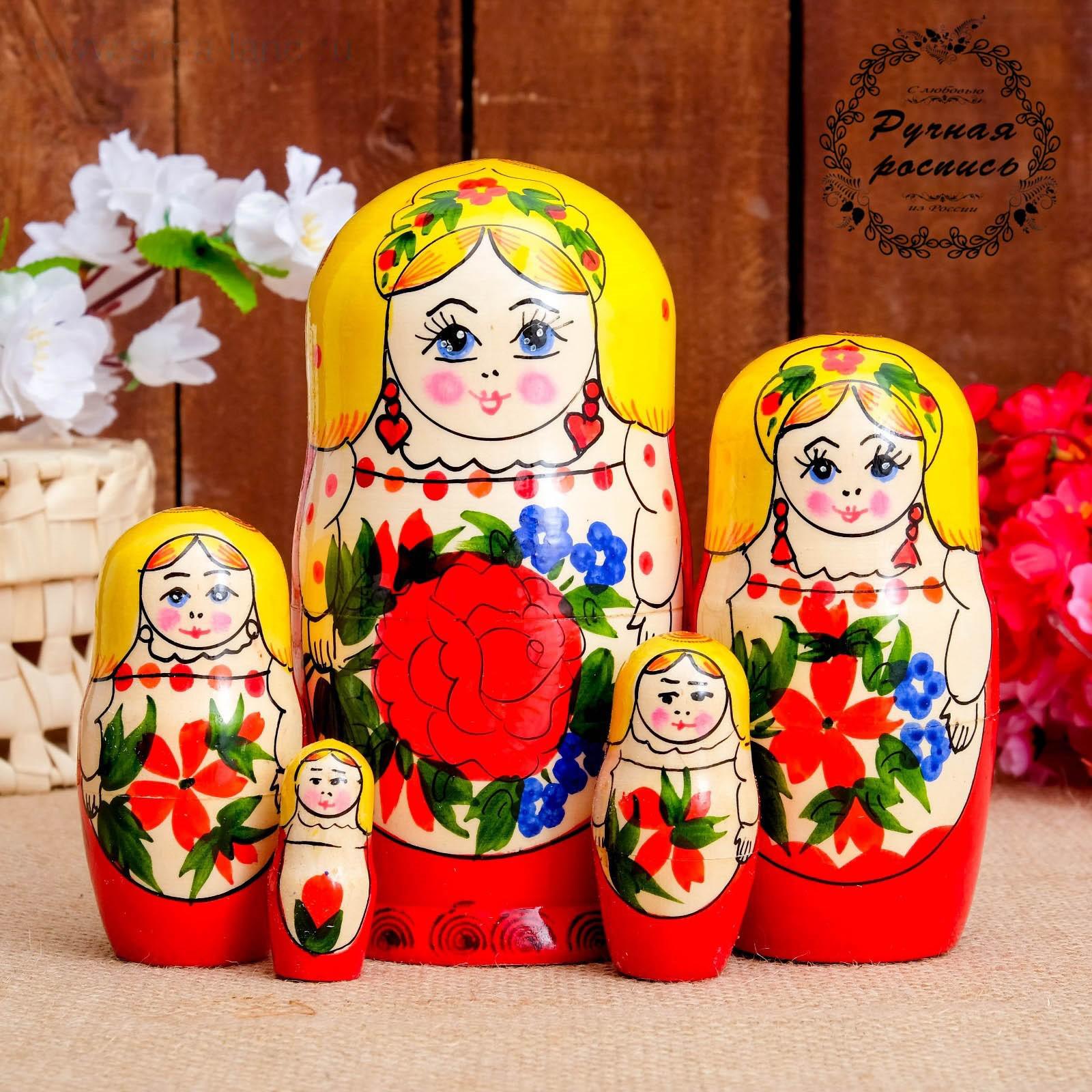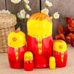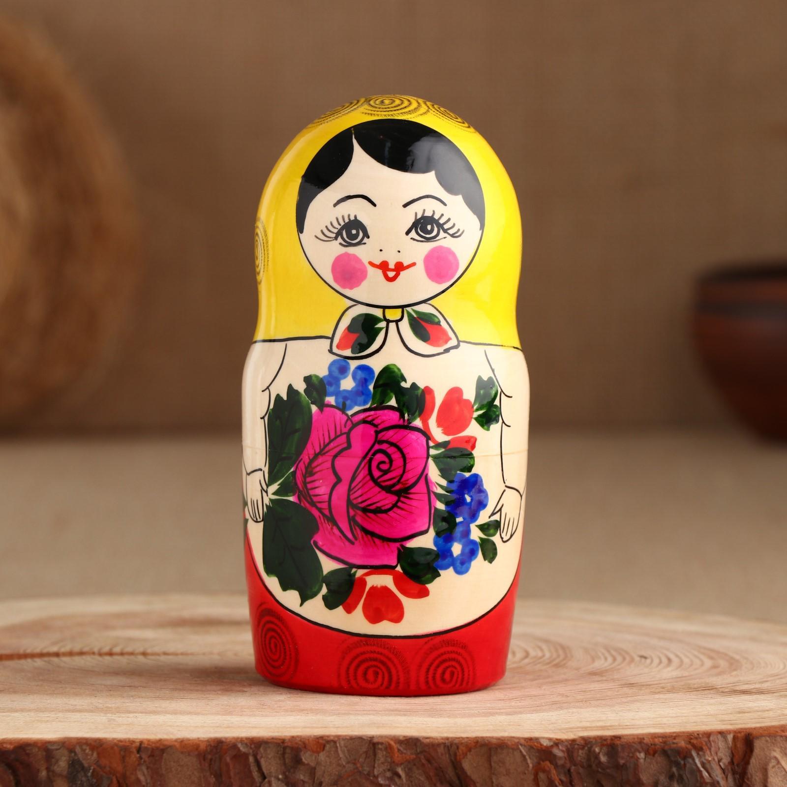 Матрёшка «Сударушка», жёлтый платок, 5 кукольная, 17 см, ручная работа
