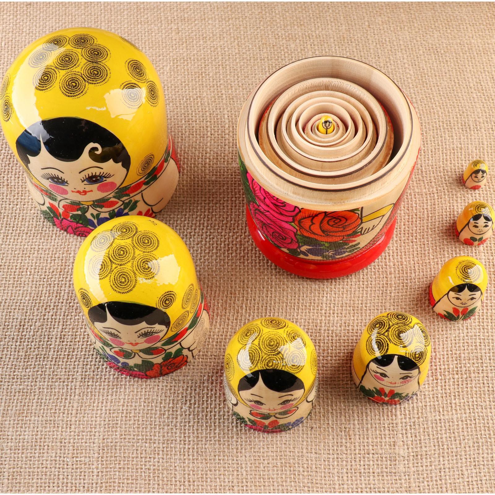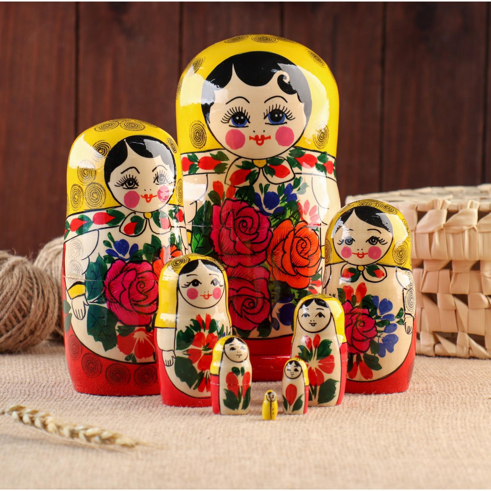 Матрёшка «Розочка», жёлтый платок, 8 кукольная, 19-22 см, ручная работа