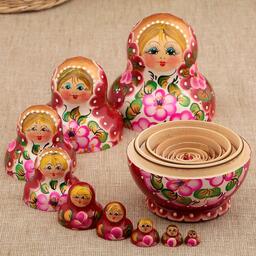 Матрёшка «Цветочки», розовое платье, 10 кукольная, 12-14 см
