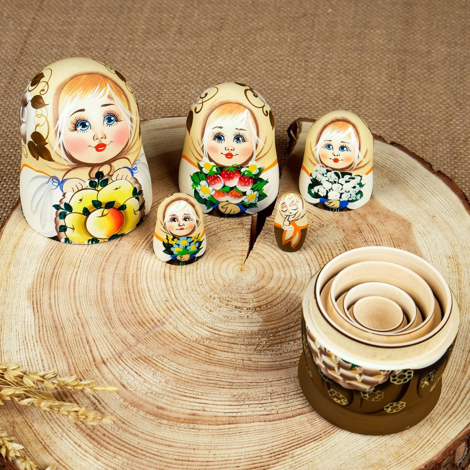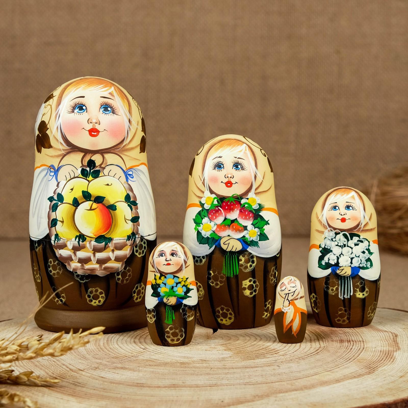 Матрёшка «Мордашка», яблочки, 5 кукольная, люкс