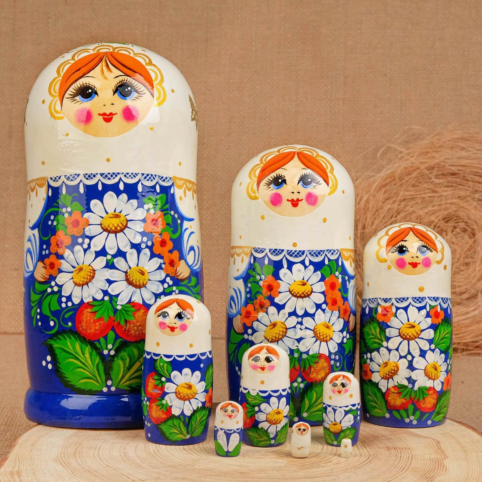 Матрёшка «Глаша»,синий сарафан, 9 кукольная, 23см
