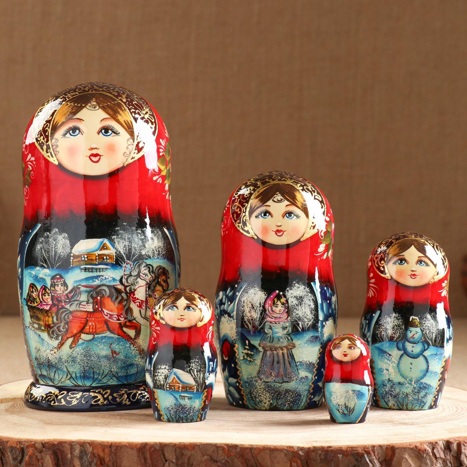 Матрёшка «Тройка», красный платок, 5 кукольная, люкс