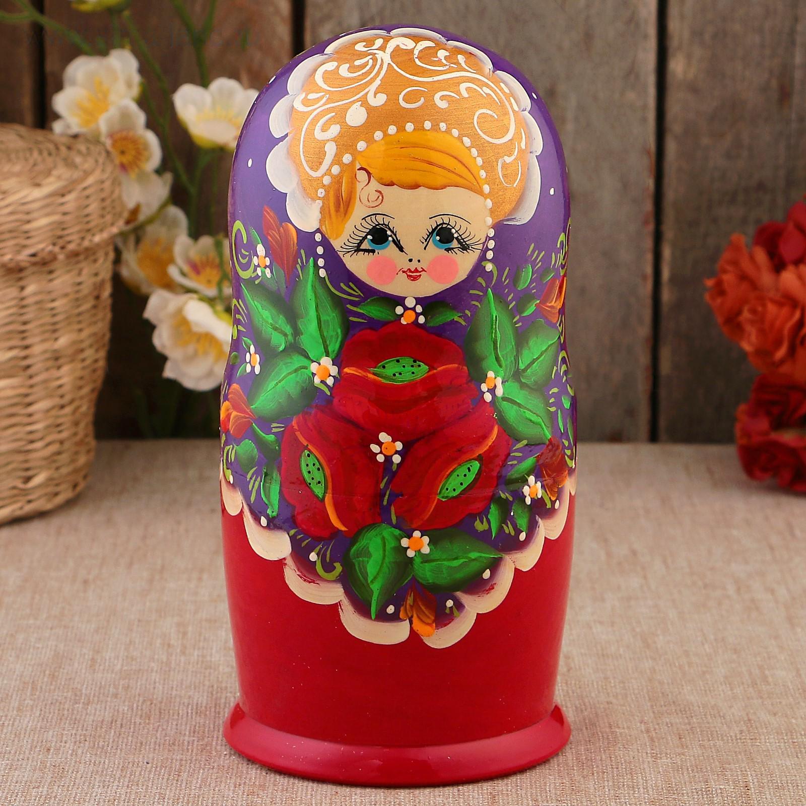 Матрёшка «Маки», фиолетовый платок, 7 кукольная, 22 см