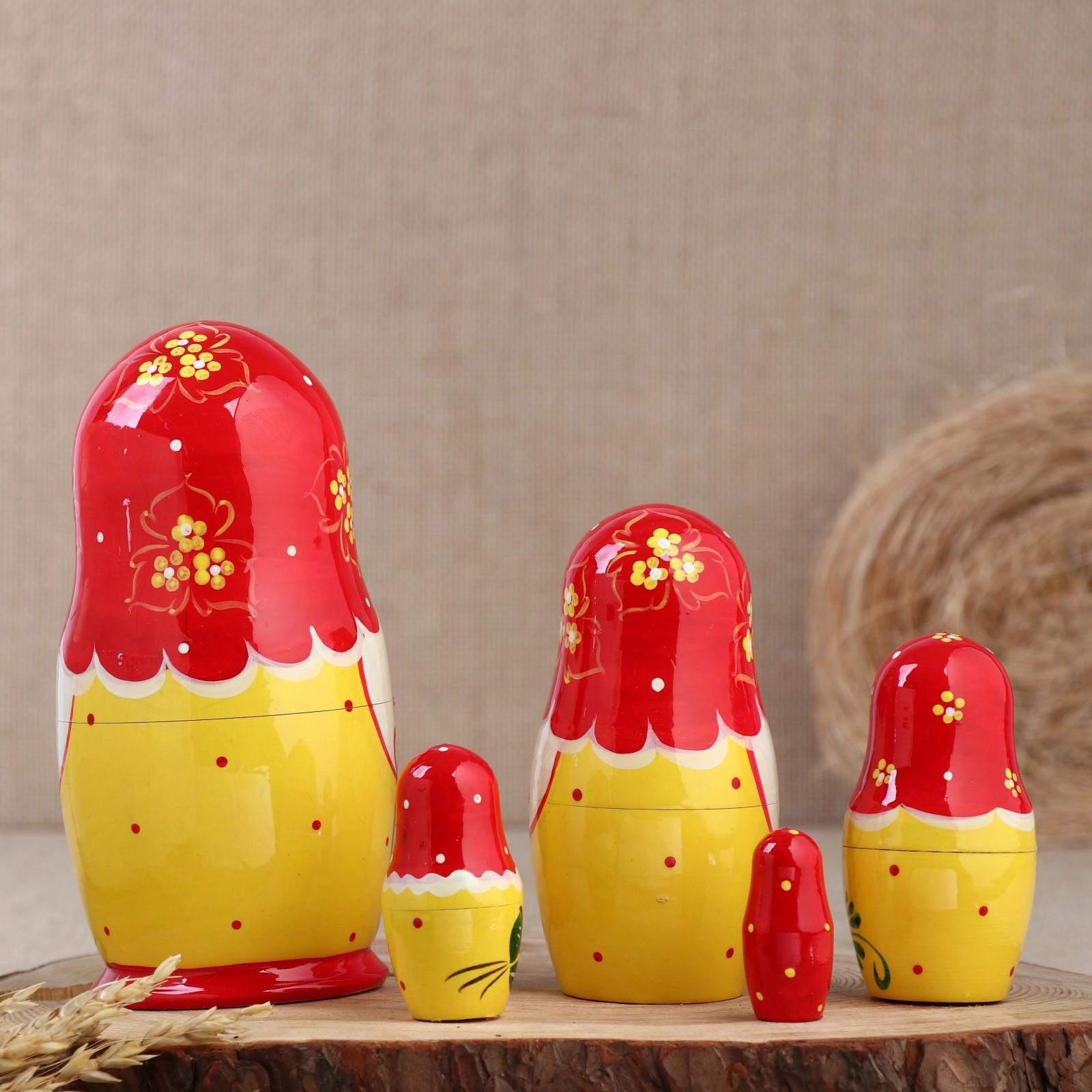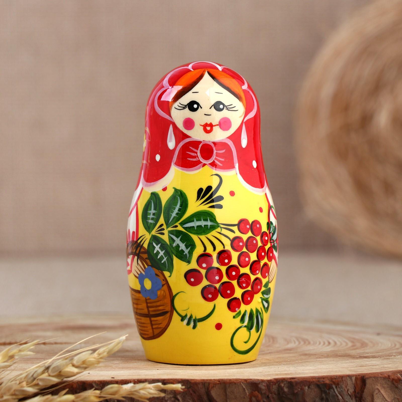 Матрёшка «Рябинка», красный платок, 5 кукольная, 17 см, ручная работа