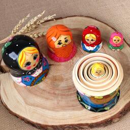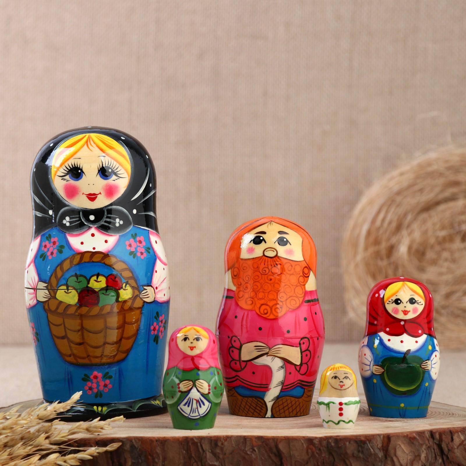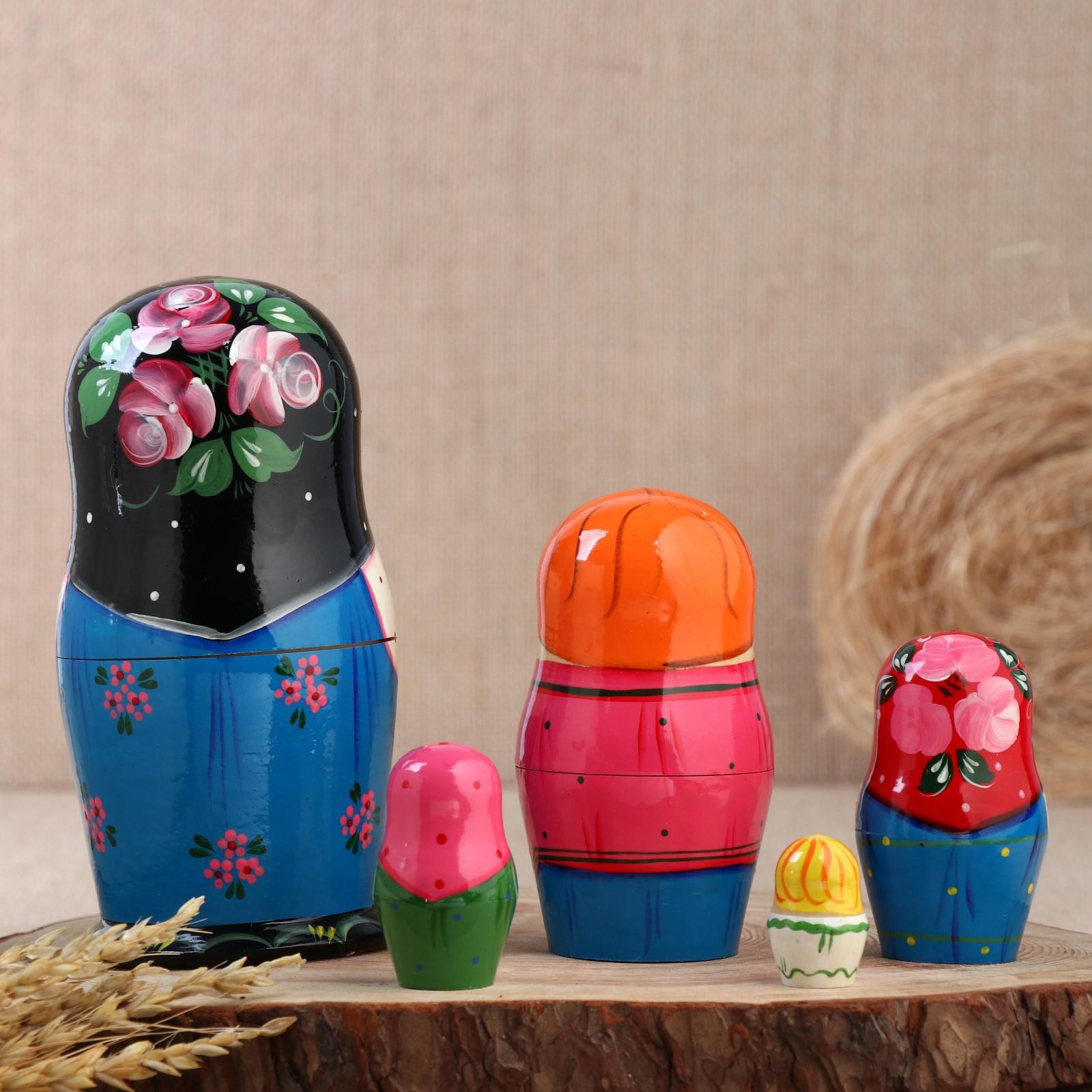 Матрёшка «Семейка», черный платок, 5 кукольная