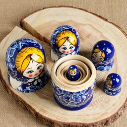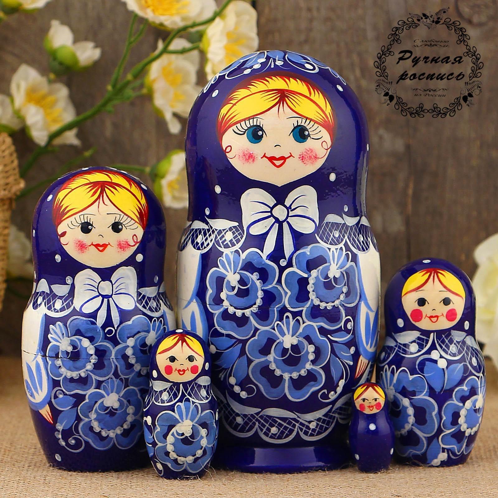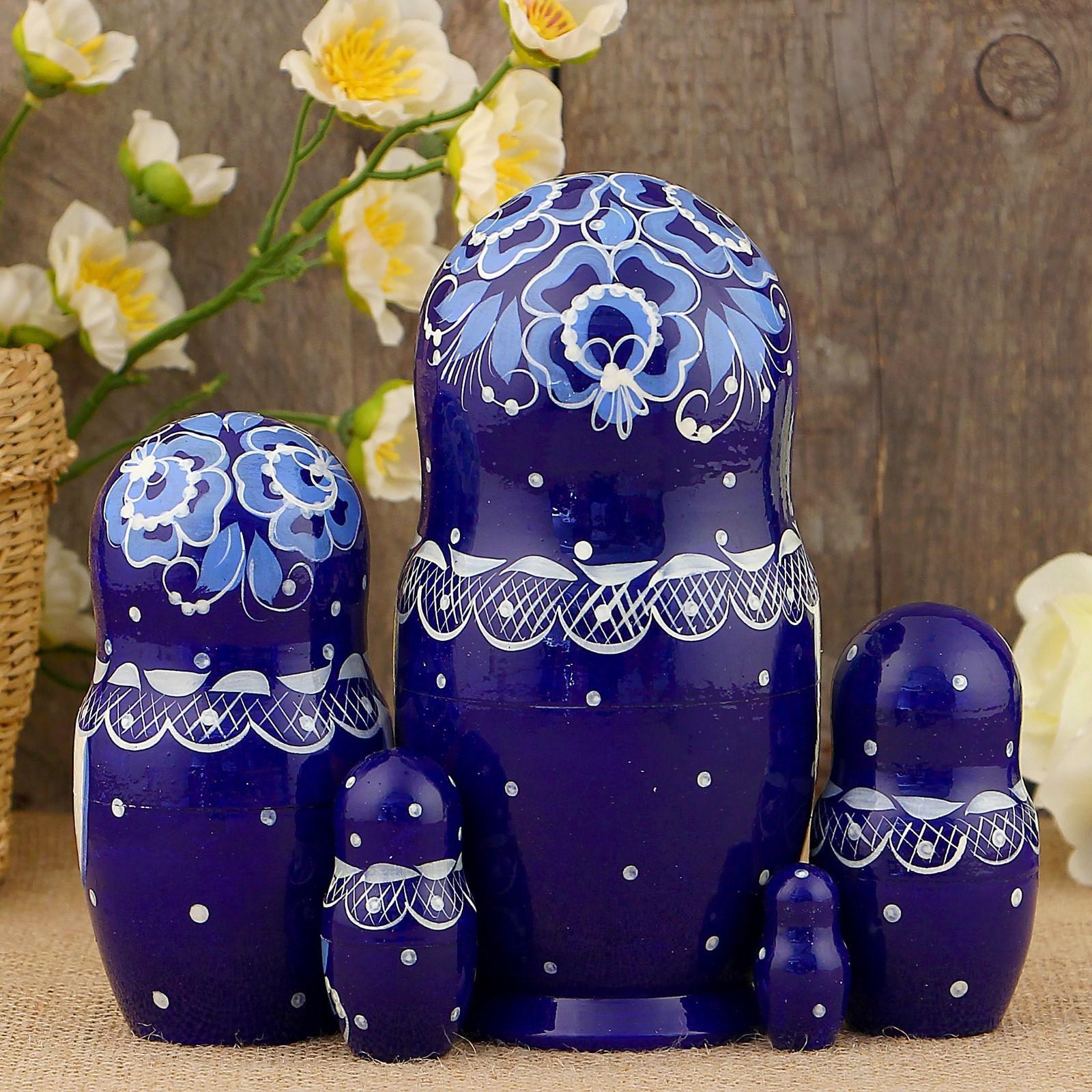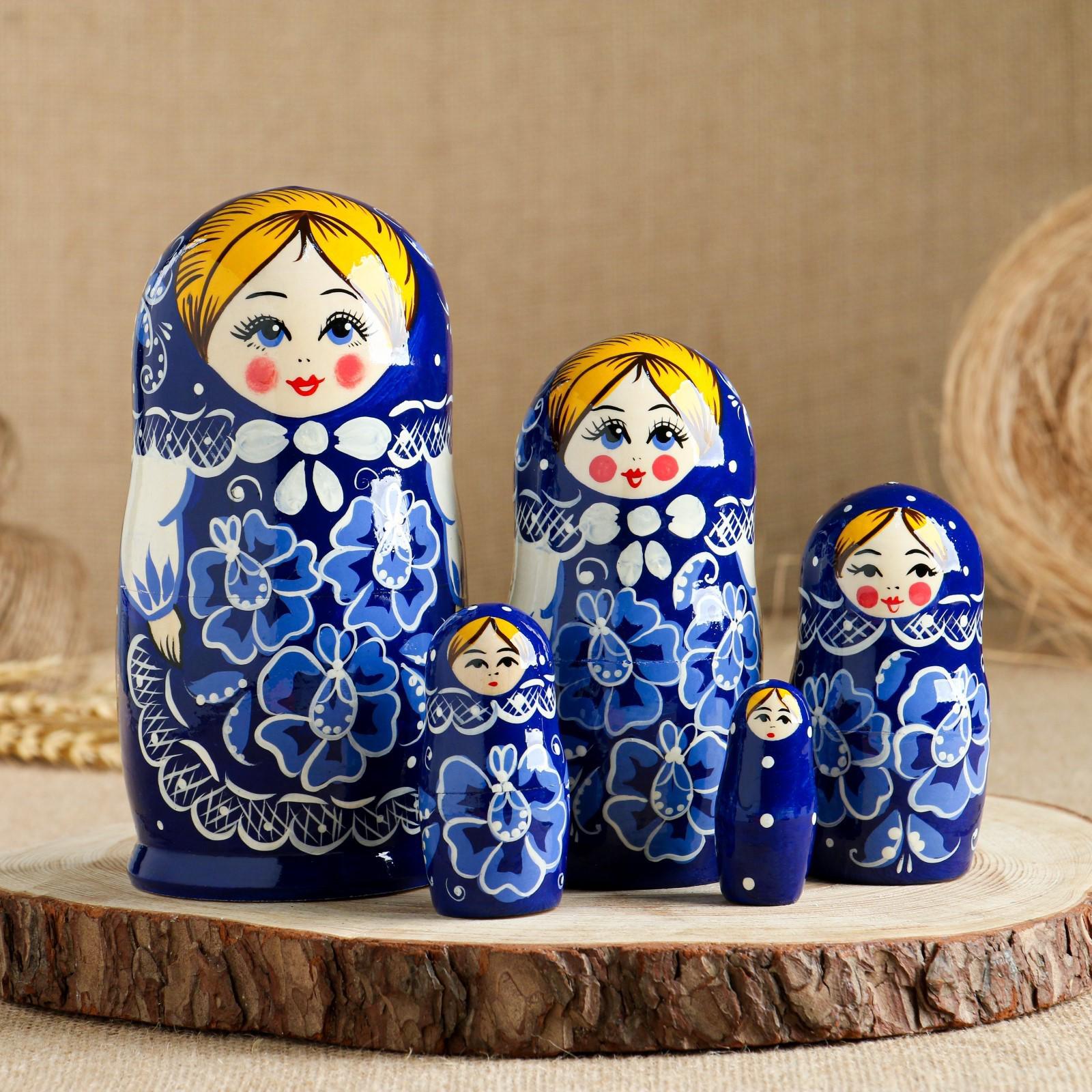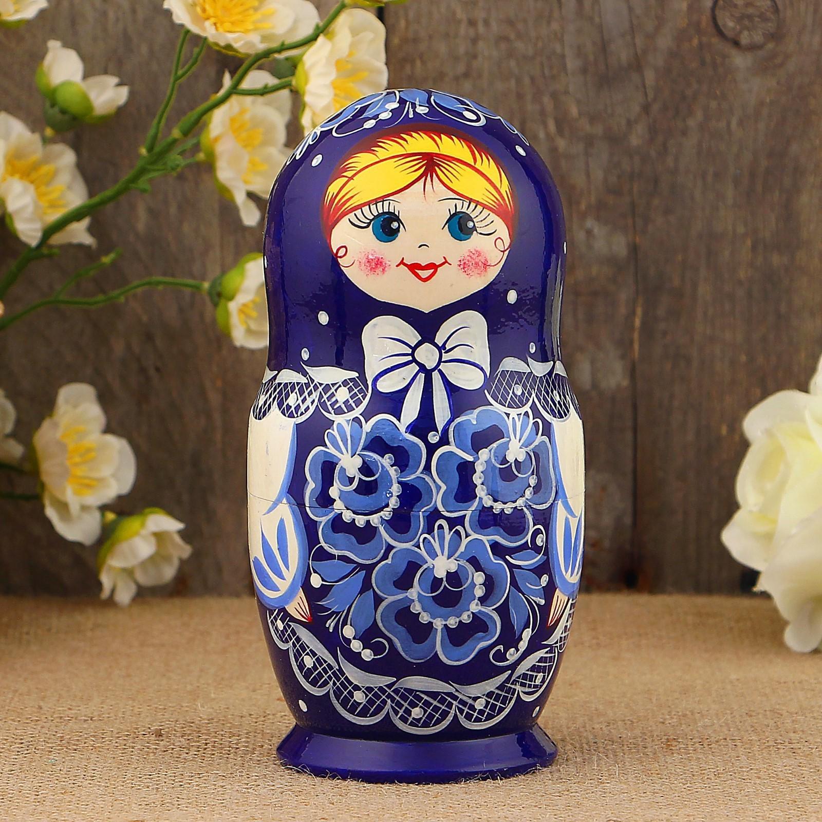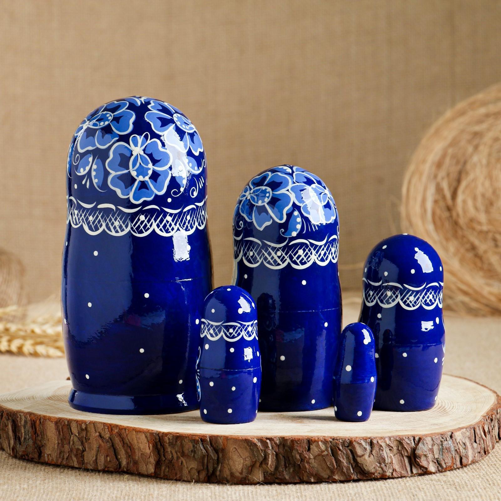 Матрёшка «Гжель», синий платок, 5 кукольная, 17 см